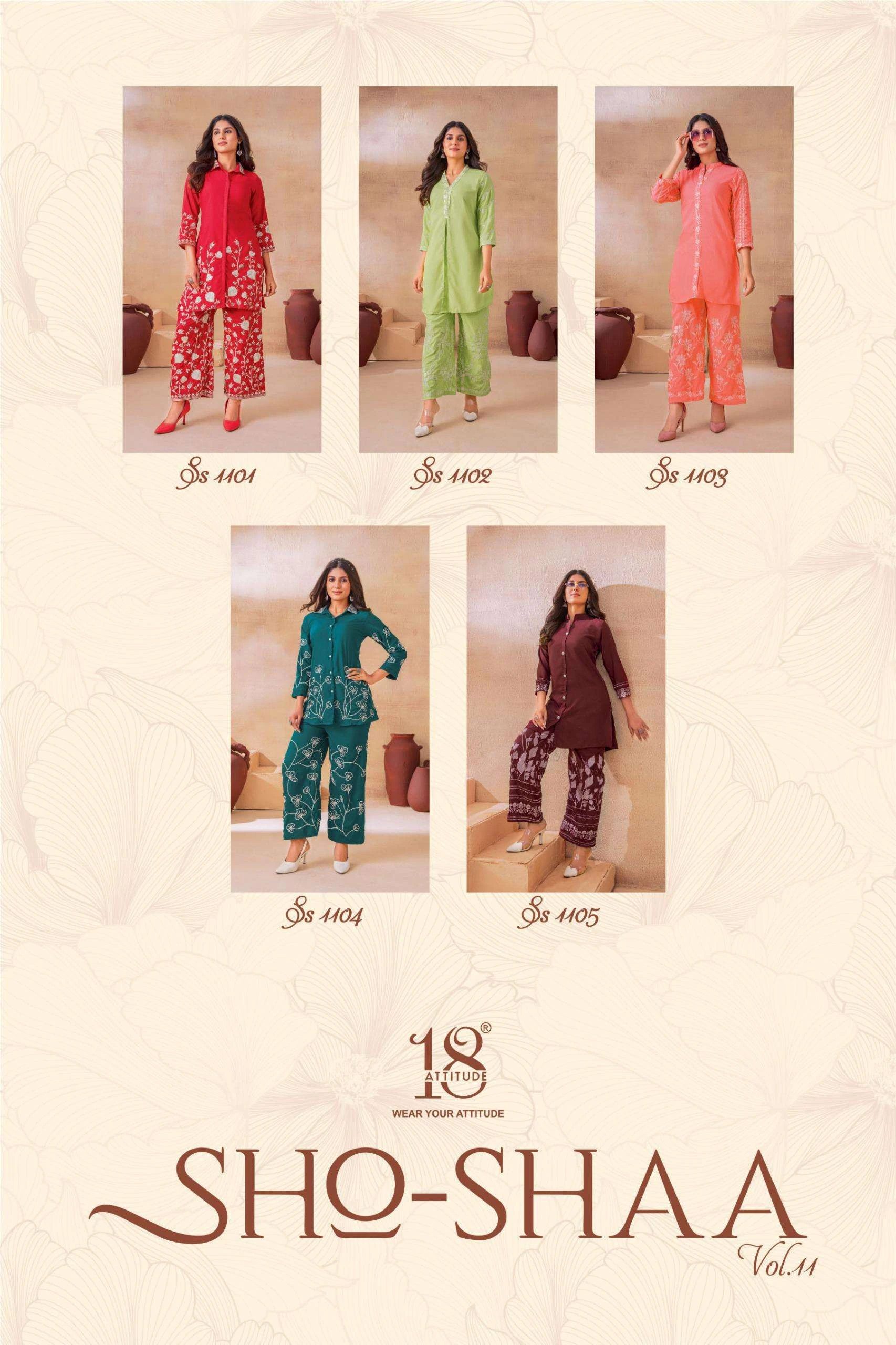 18 Attitude Sho Shaa Vol 11 Rayon Wholesale Co-Ord Set Collection
