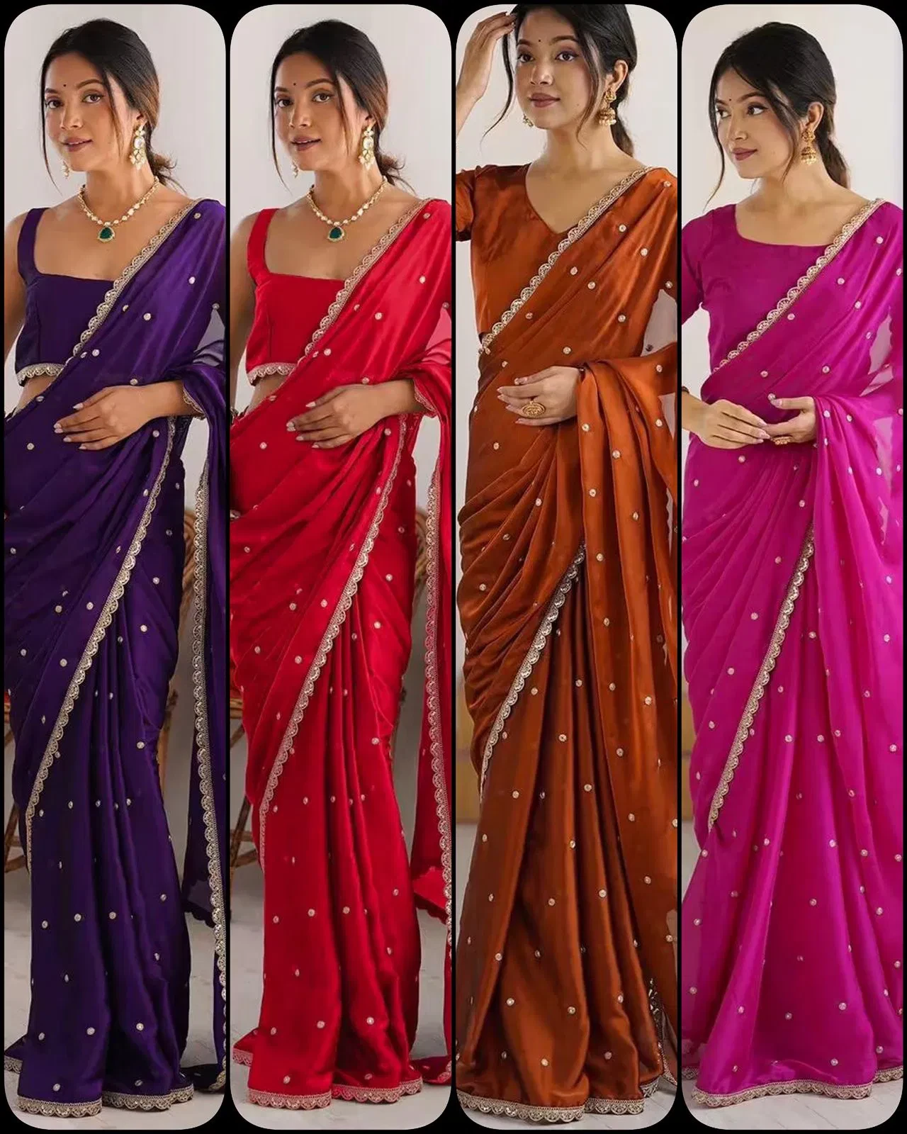 | Work | Saree Butti Embroidered and Both Sequence Work with Contrast Plain Blouse Piece |