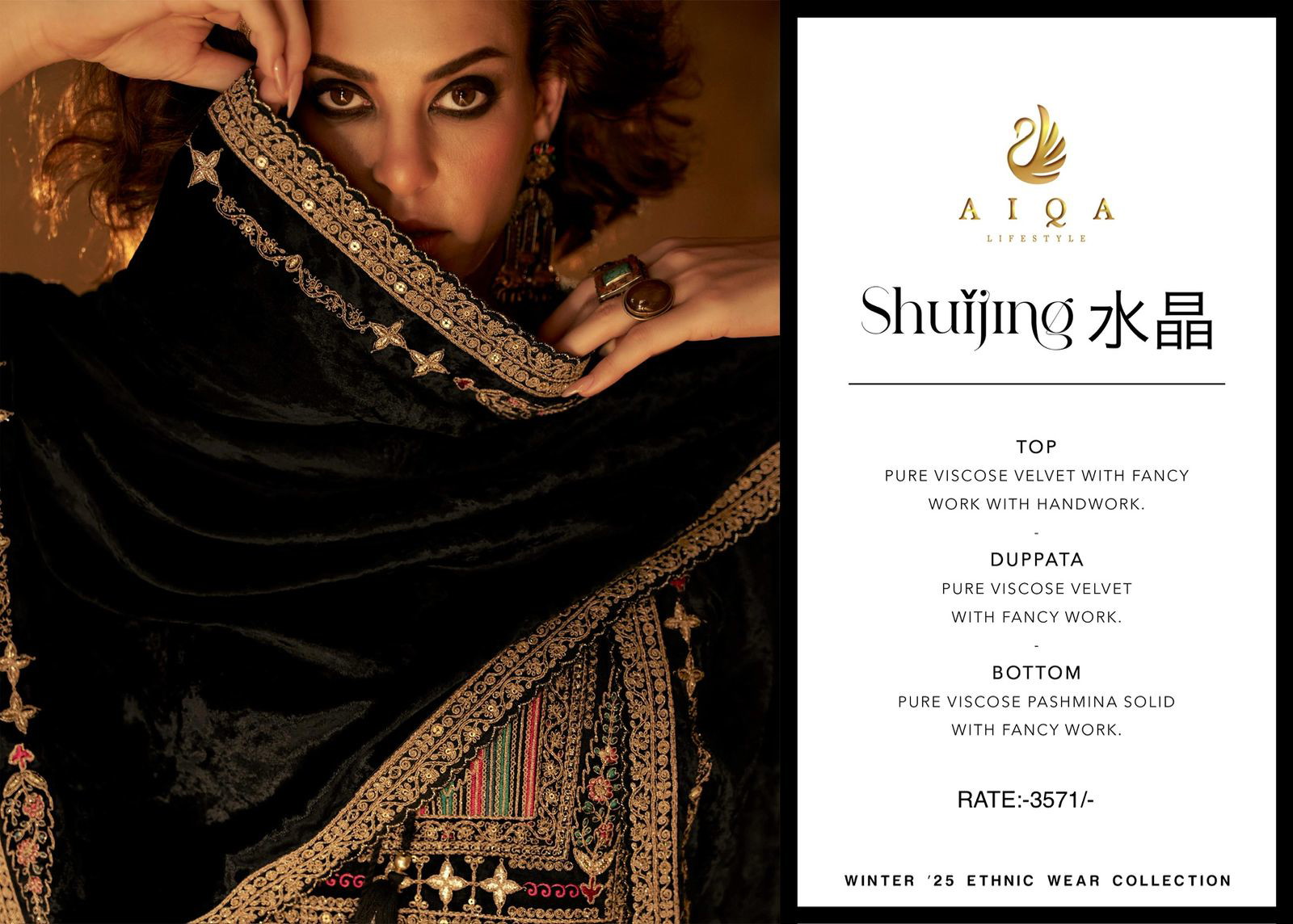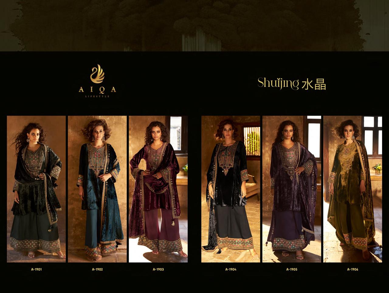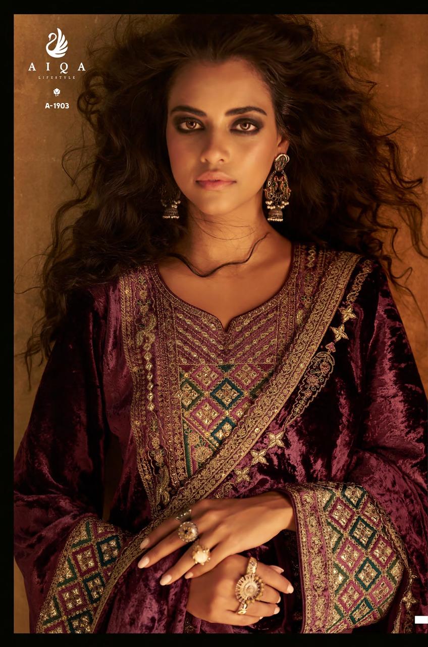 Aiqa Shuijing Viscose Velvet Fancy Handwork Wholesale Winter Collection