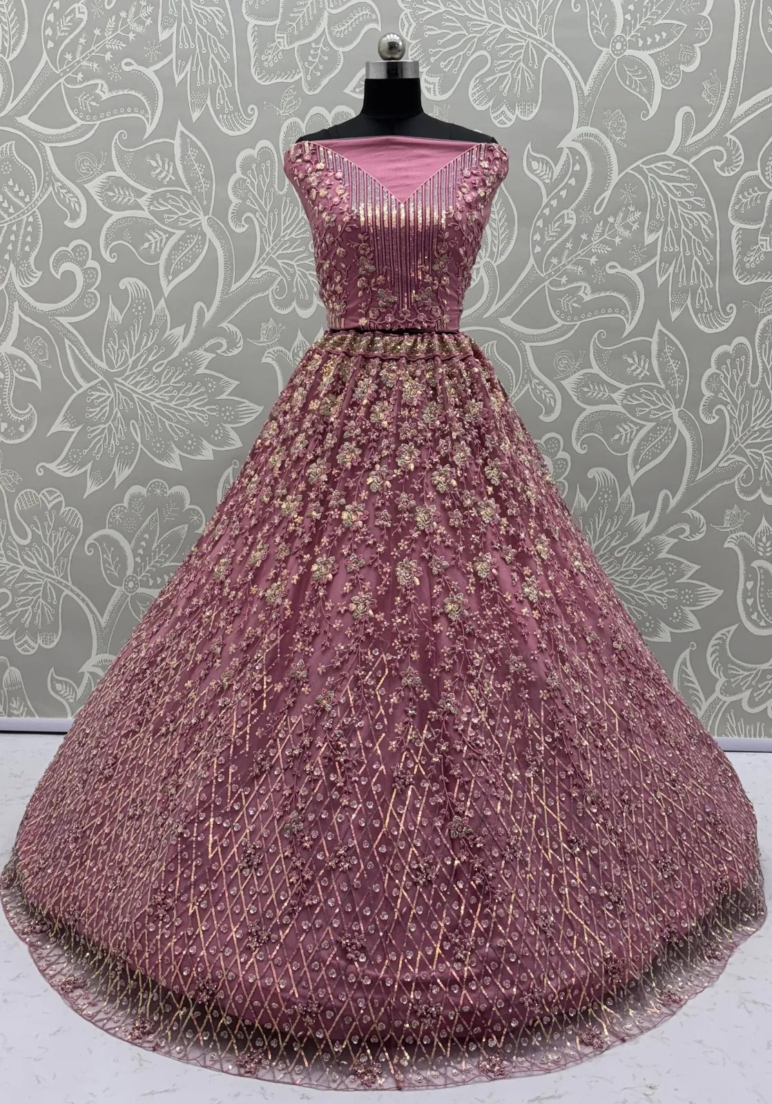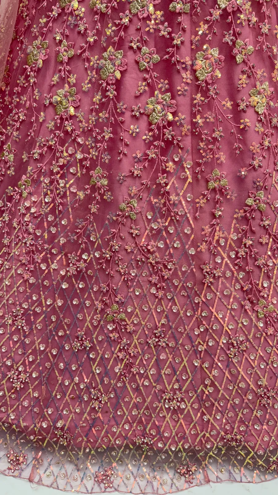 | Lehenga | Heavy Net Multi thread work, Sequence, Zari Embroidery, Zircon Studded all Over |