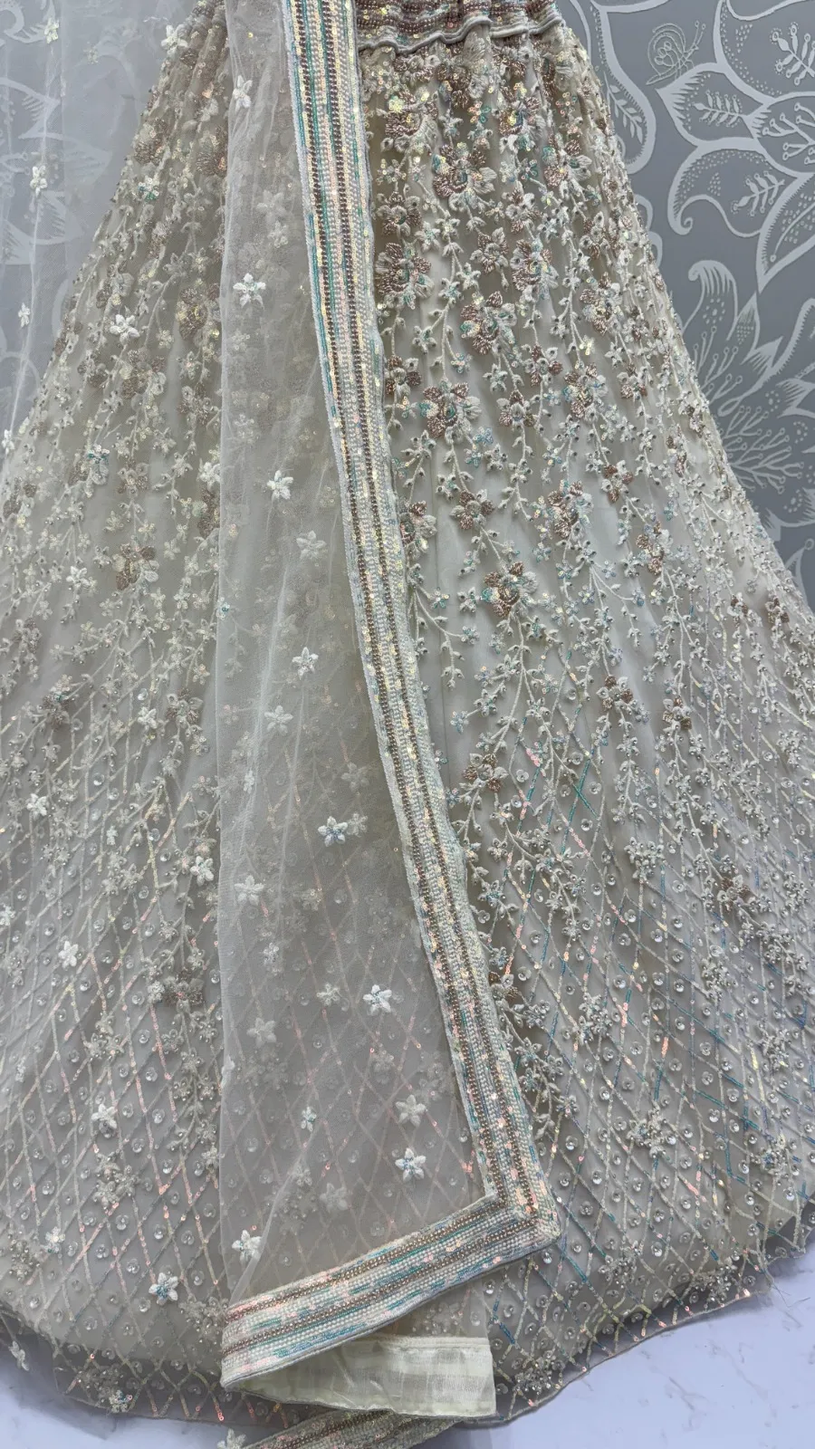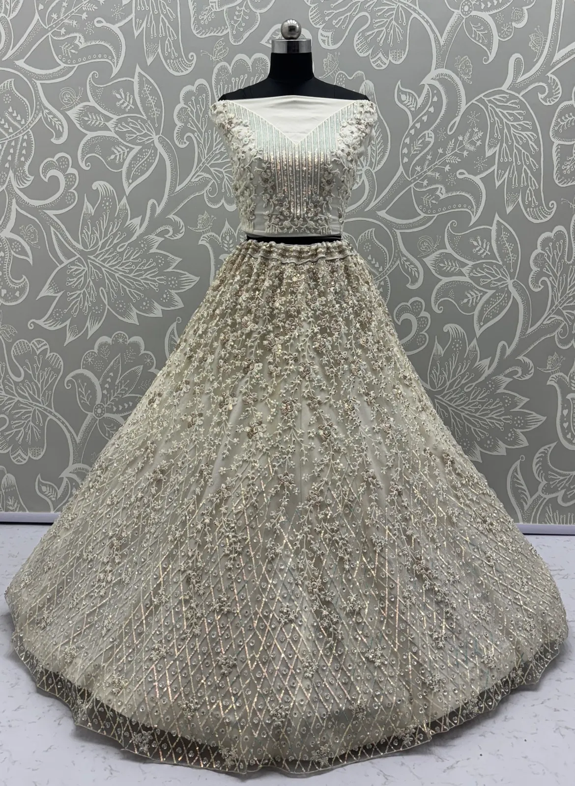 | Lehenga | Heavy Net Multi thread work, Sequence, Zari Embroidery, Zircon Studded all Over |