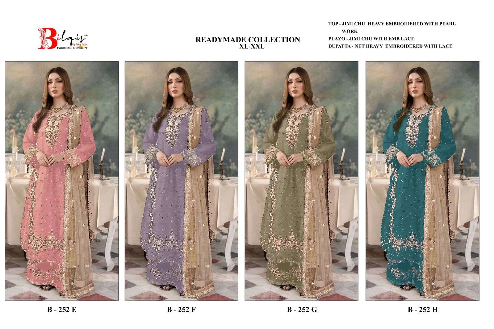 Bilqistm B 252 A to D Jimmy Choo Wholesale Pakistani Readymade Suit Collection