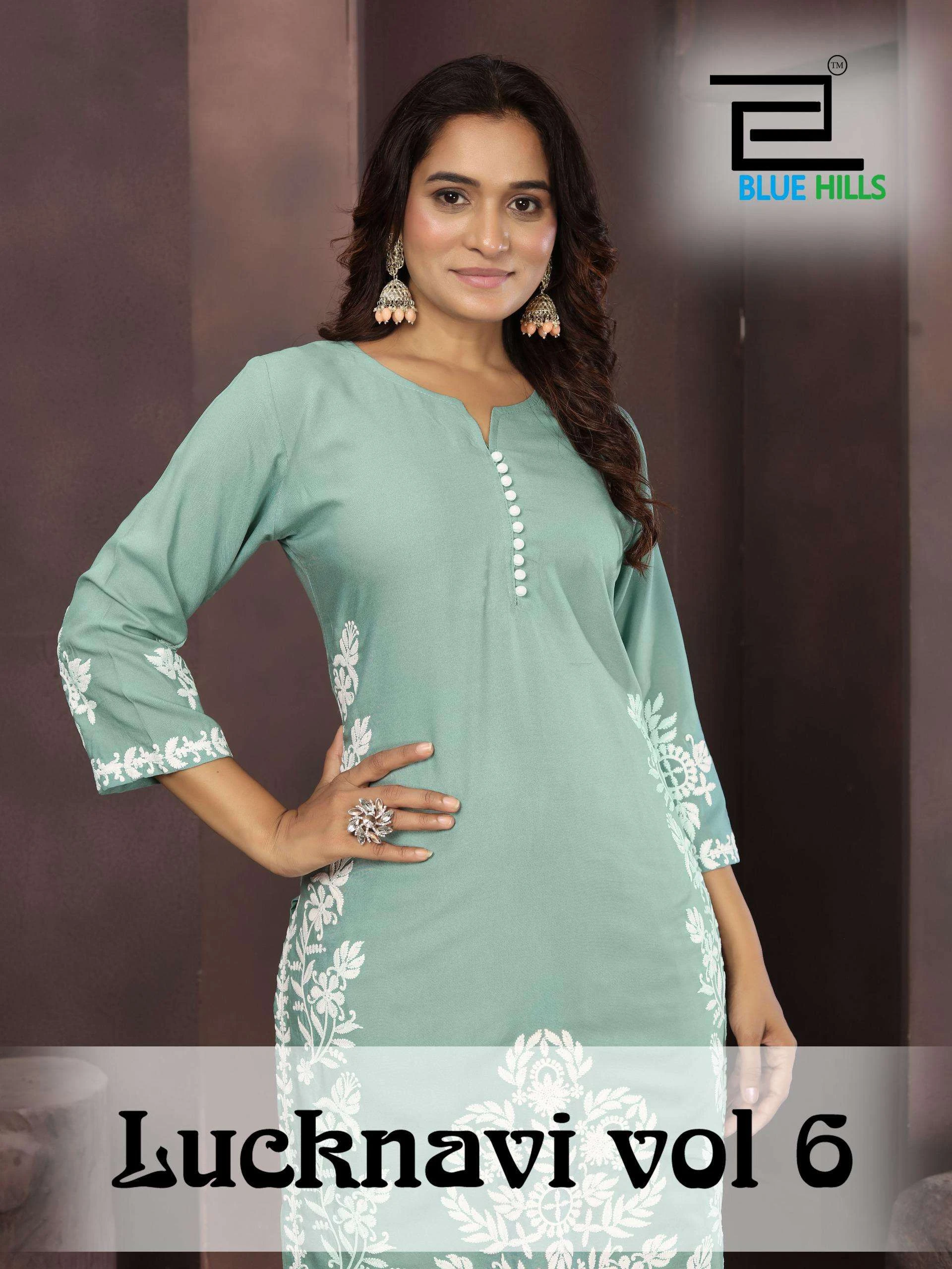 Blue Hills Lucknavi Vol 6 Rayon Wholesale Kurti with Pant Collection