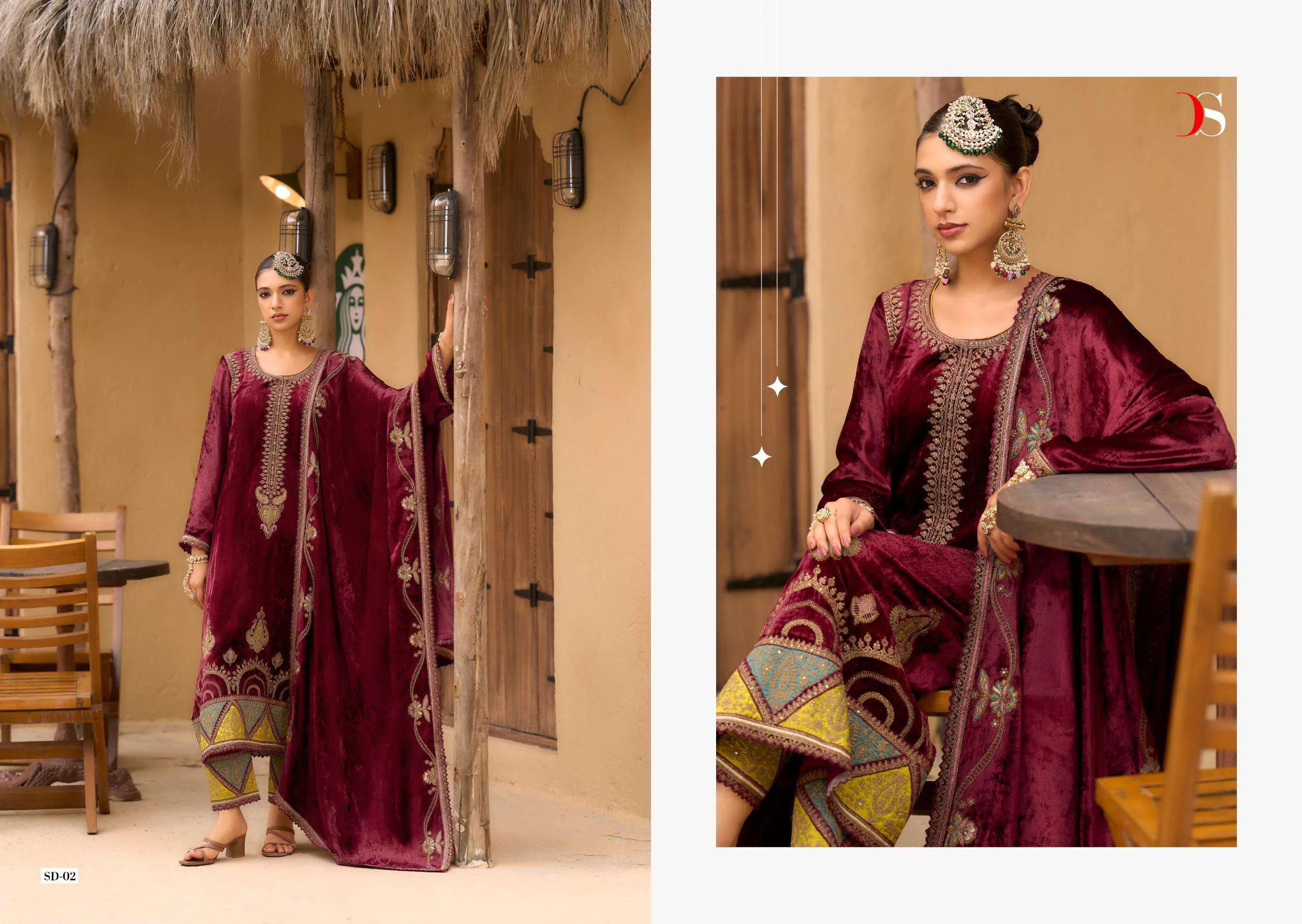 Deepsy Rang E Bahar Viscose Velvet Embroidery Wholesale Winter Collection