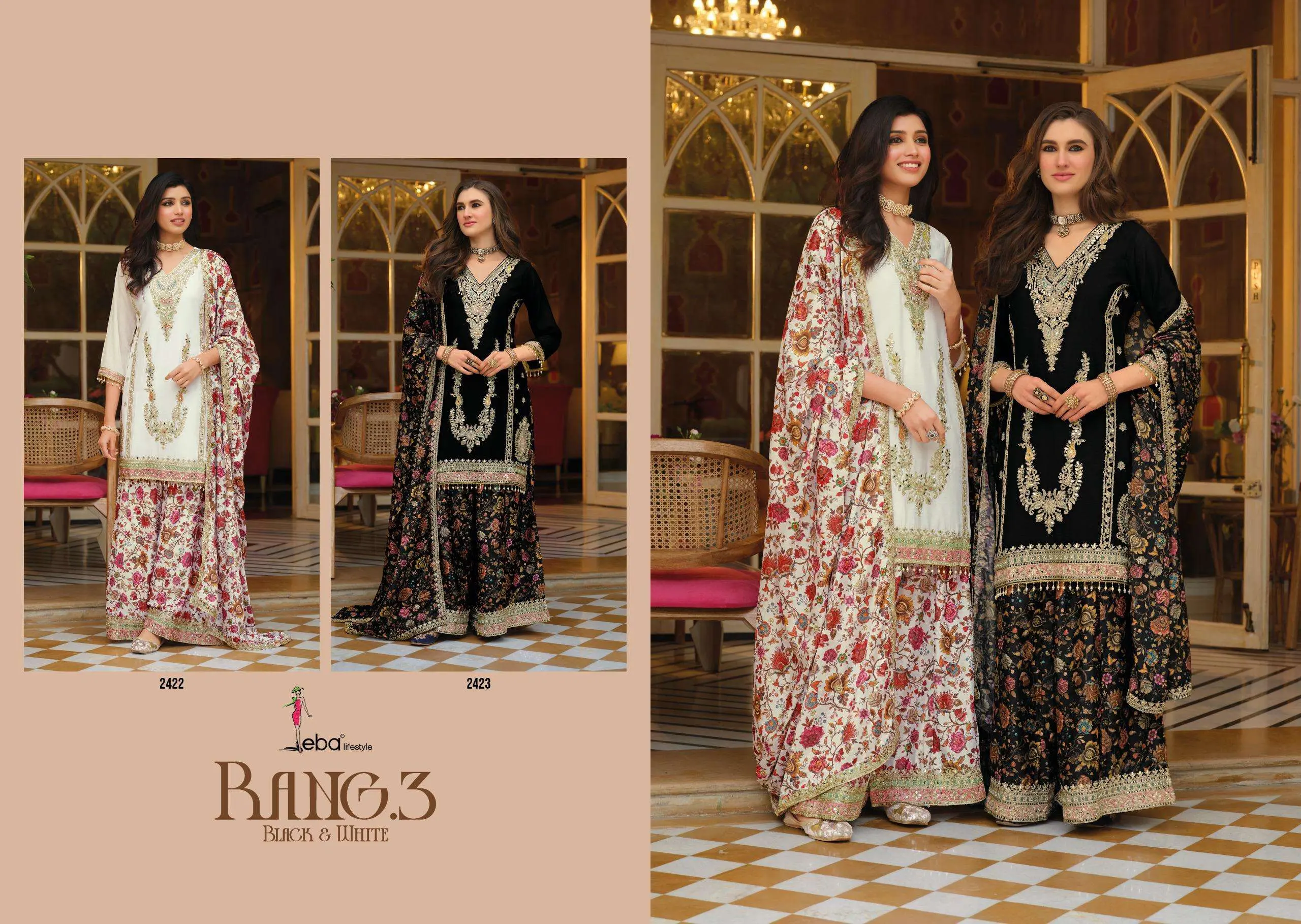Eba Lifestyle Rang Black and White Chinon Wholesale Pakistani Readymade Suit Collection
