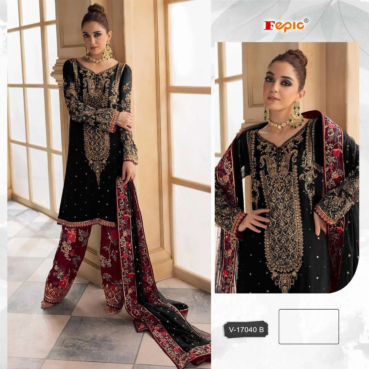 Fepic Rosemeen V 17040 Velvet Heavy Embroidery Wholesale Pakistani Winter Suit Collection