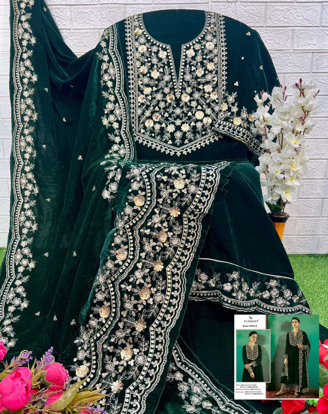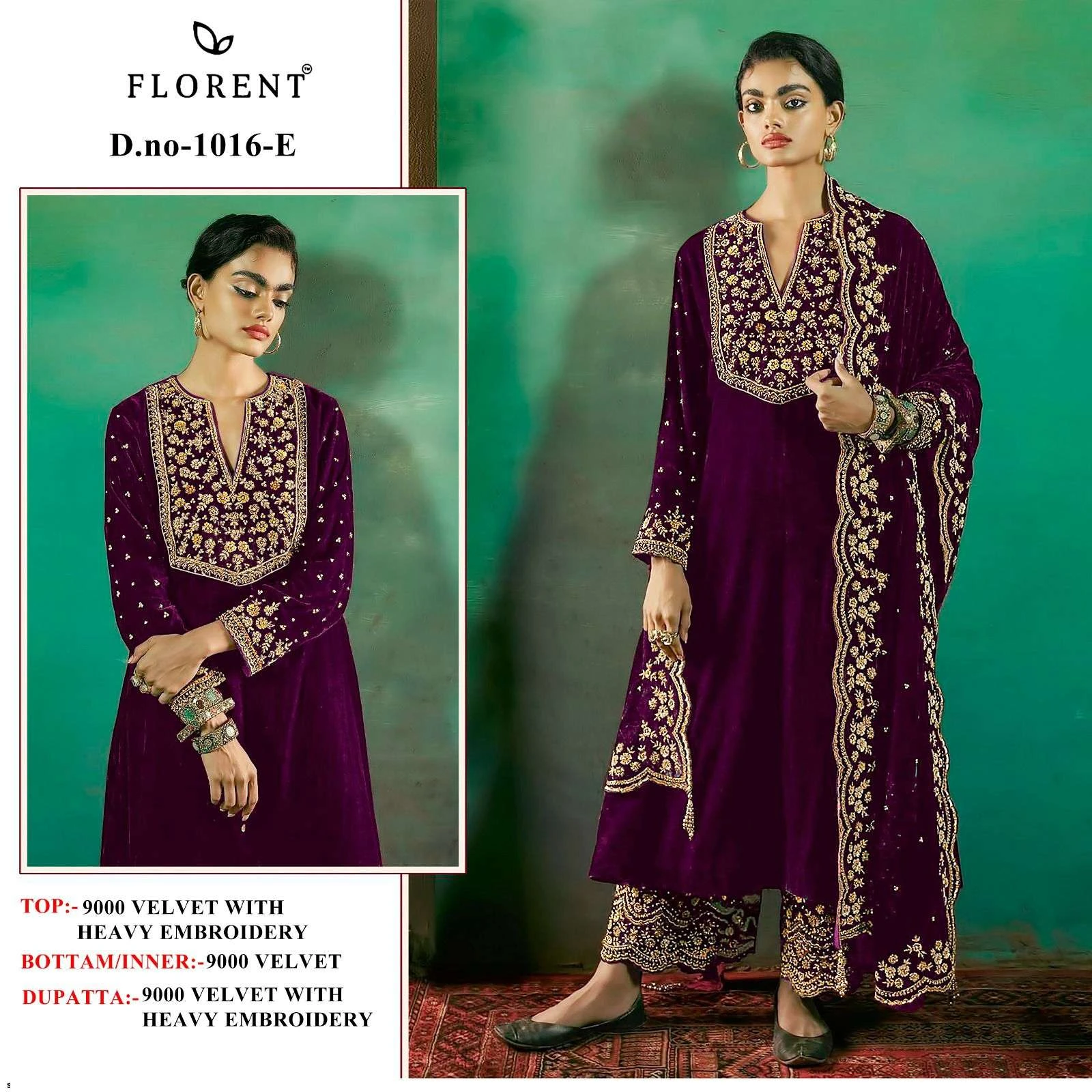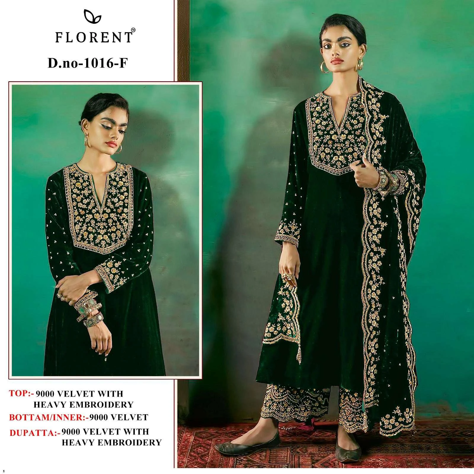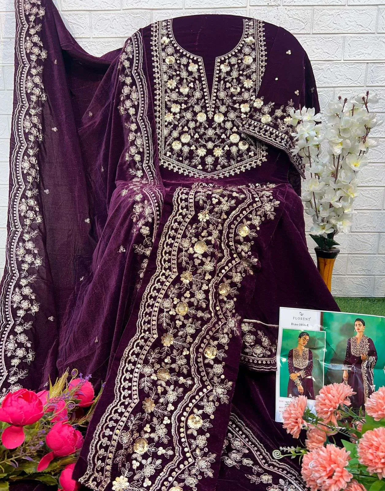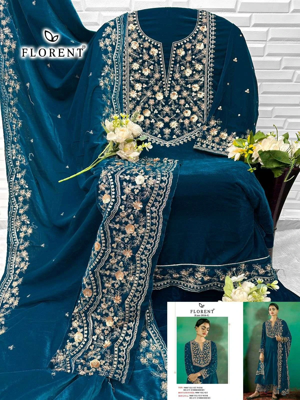 Florent Tm Design No-1016 Efghi Velvet Wholesale Pakistani Winter Suit Collection