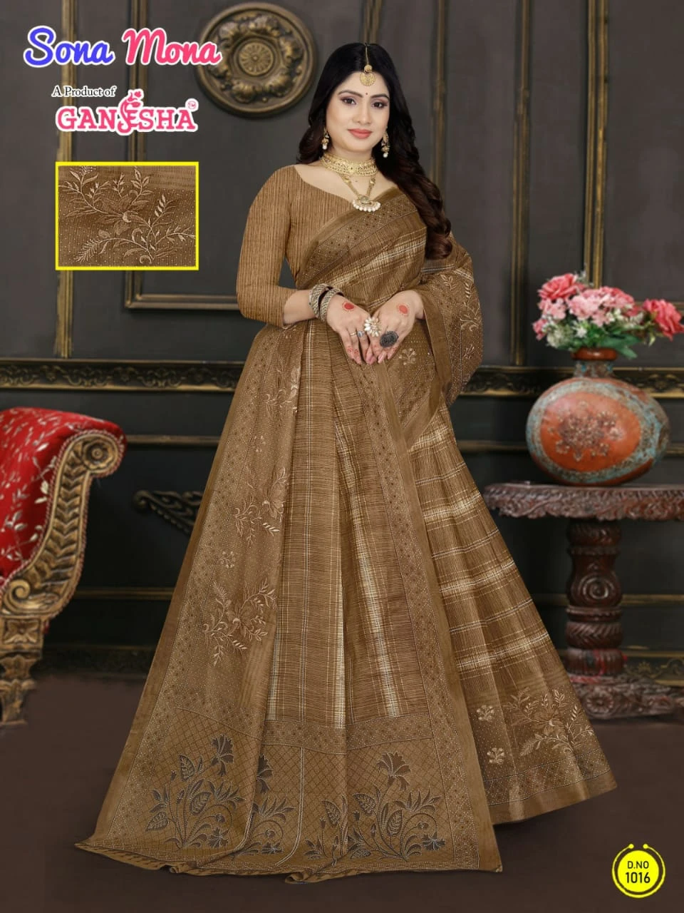 Ganesha Sona Mona Pure Cotton with Embroidery Wholesale Saree Collection