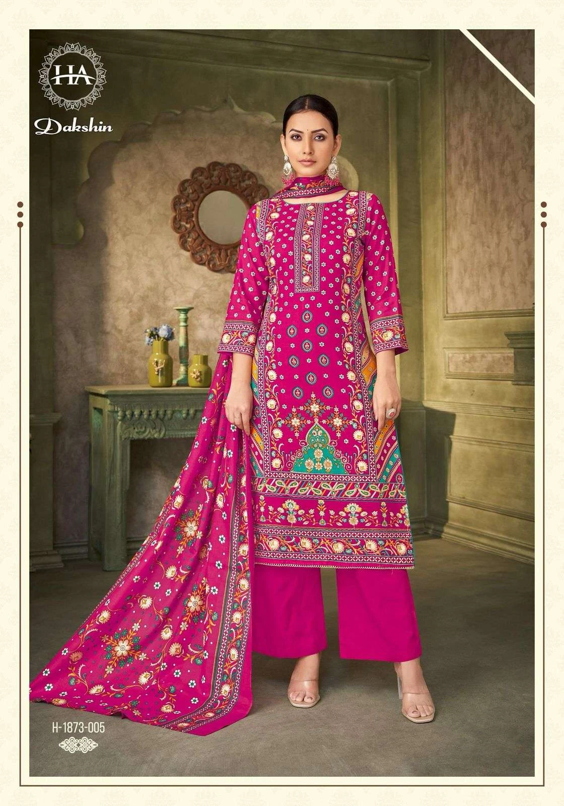 Harshit Fashion Hub Dakshin Rayon Print with Work Wholesale Pakistani Suit Collection