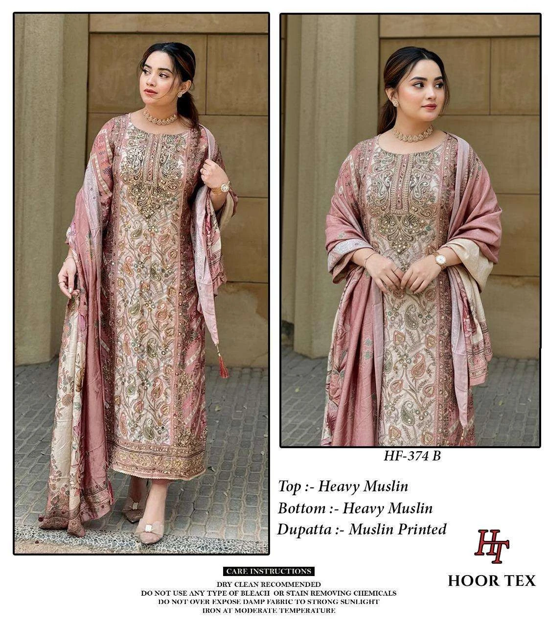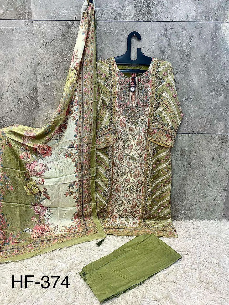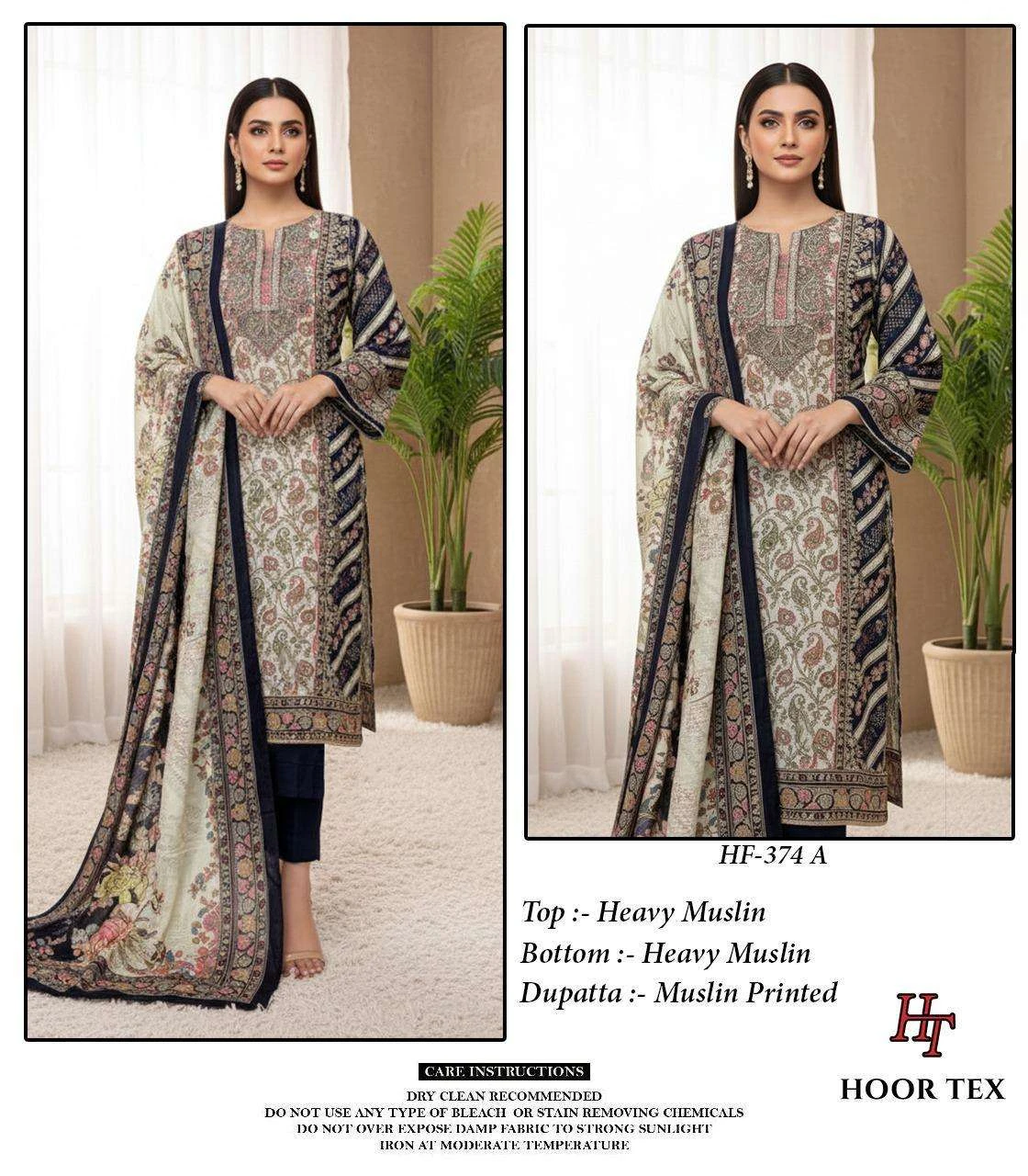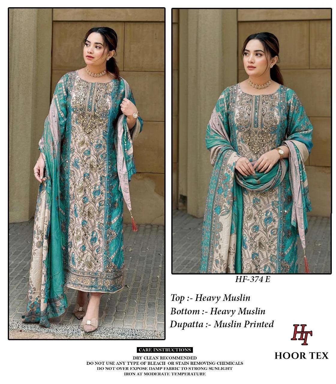 Hoor Tex Design No-Hf 374 A-F Heavy Muslin Wholesale Pakistani Readymade Suit Collection