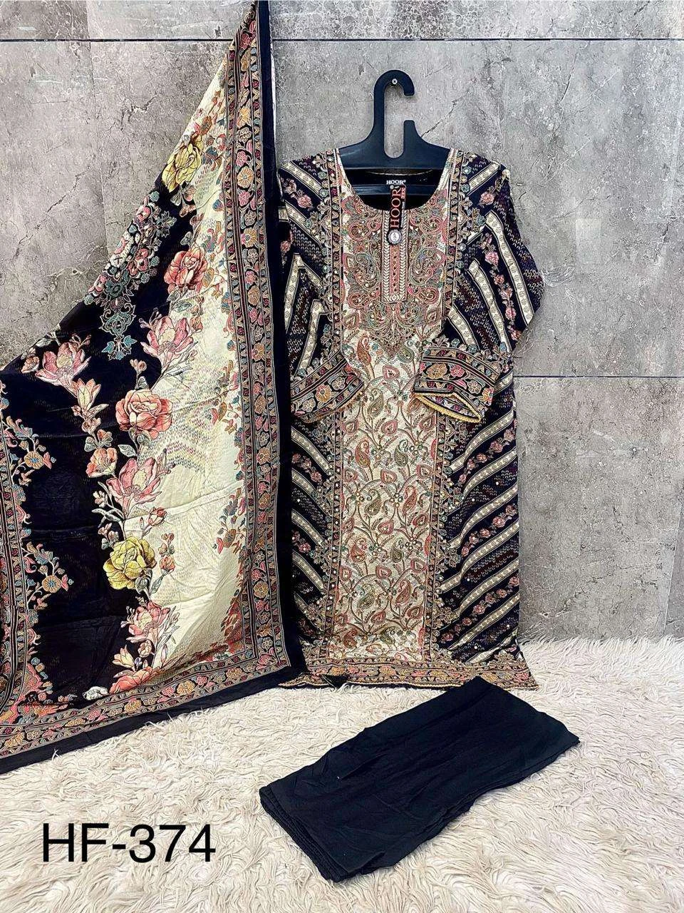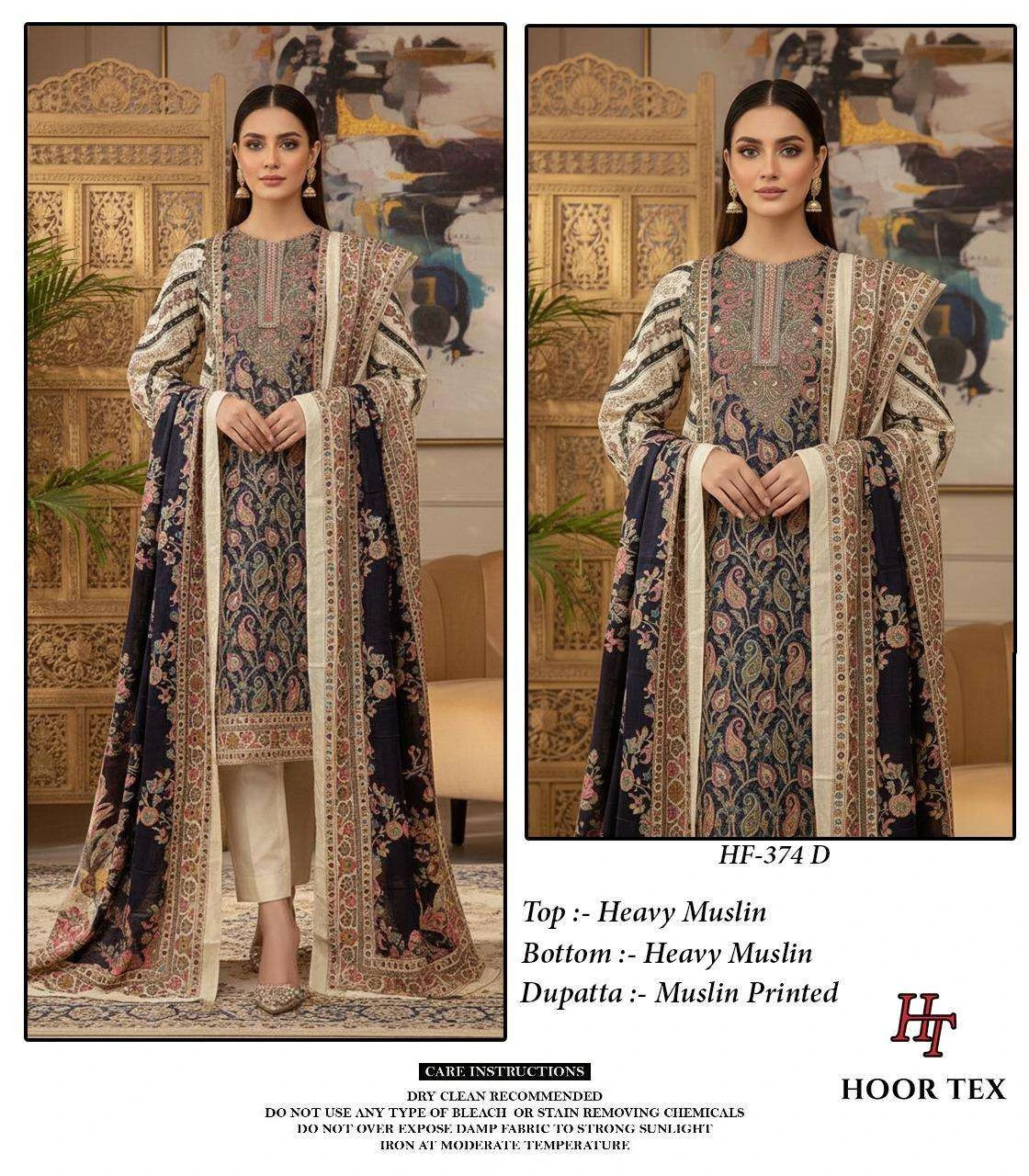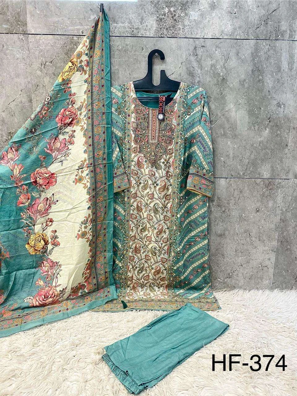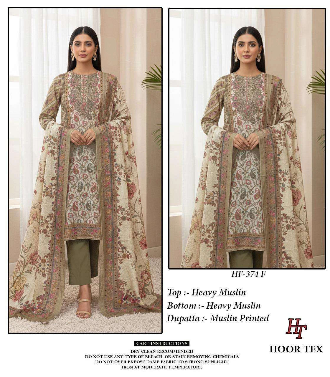 Hoor Tex Design No-Hf 374 A-F Heavy Muslin Wholesale Pakistani Readymade Suit Collection
