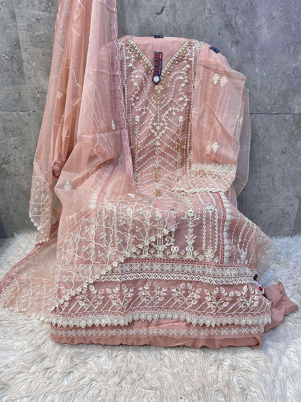 Hoor Tex Or 89 Organza Heavy Embroidery Wholesale Designer Pakistani Suit Collection