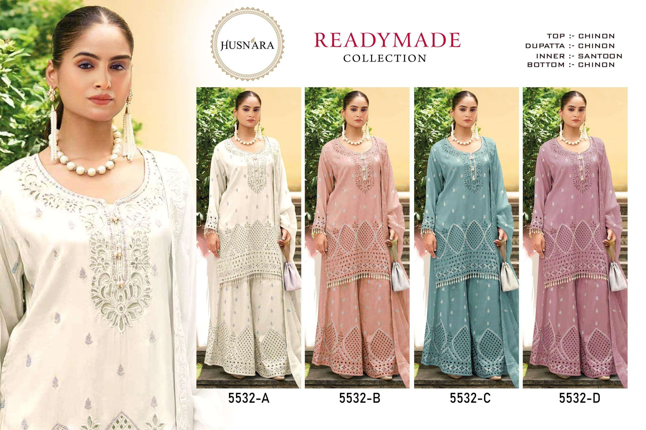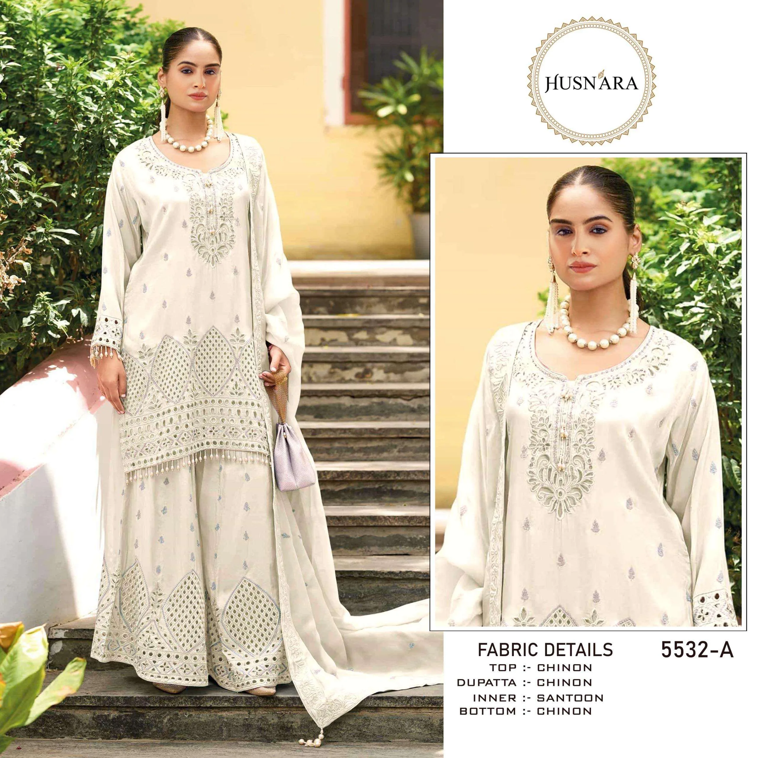 Husnara D No 5532 Chinon Heavy Embroidery Wholesale Pakistani Suit Collection