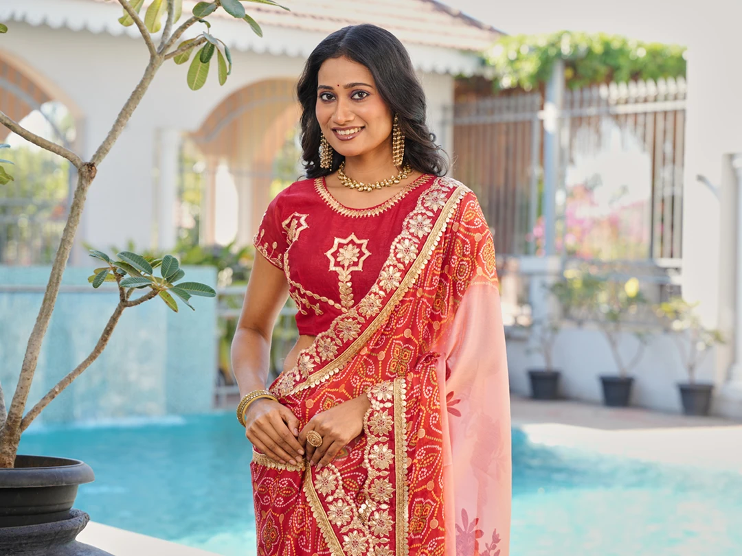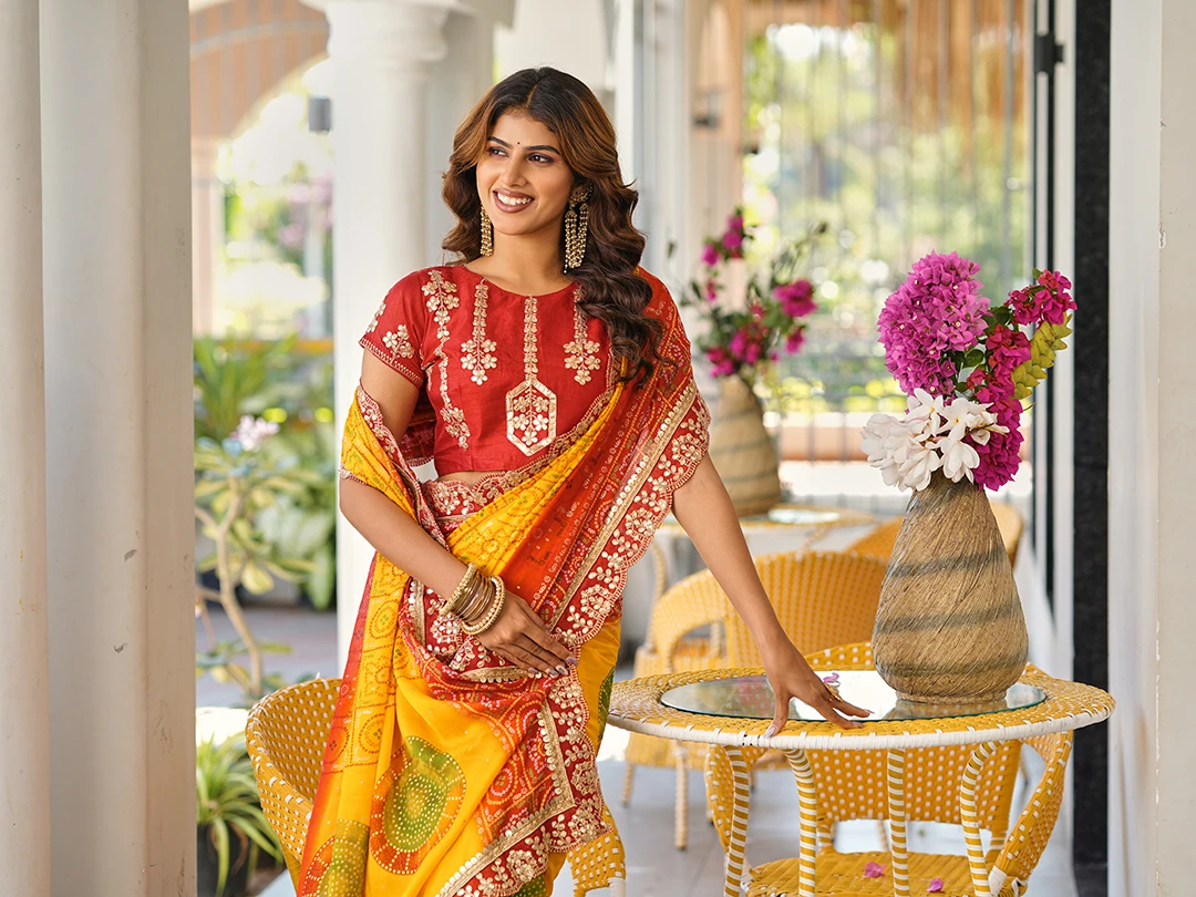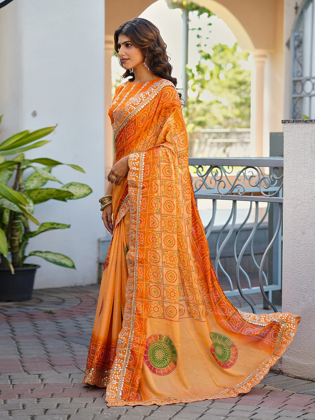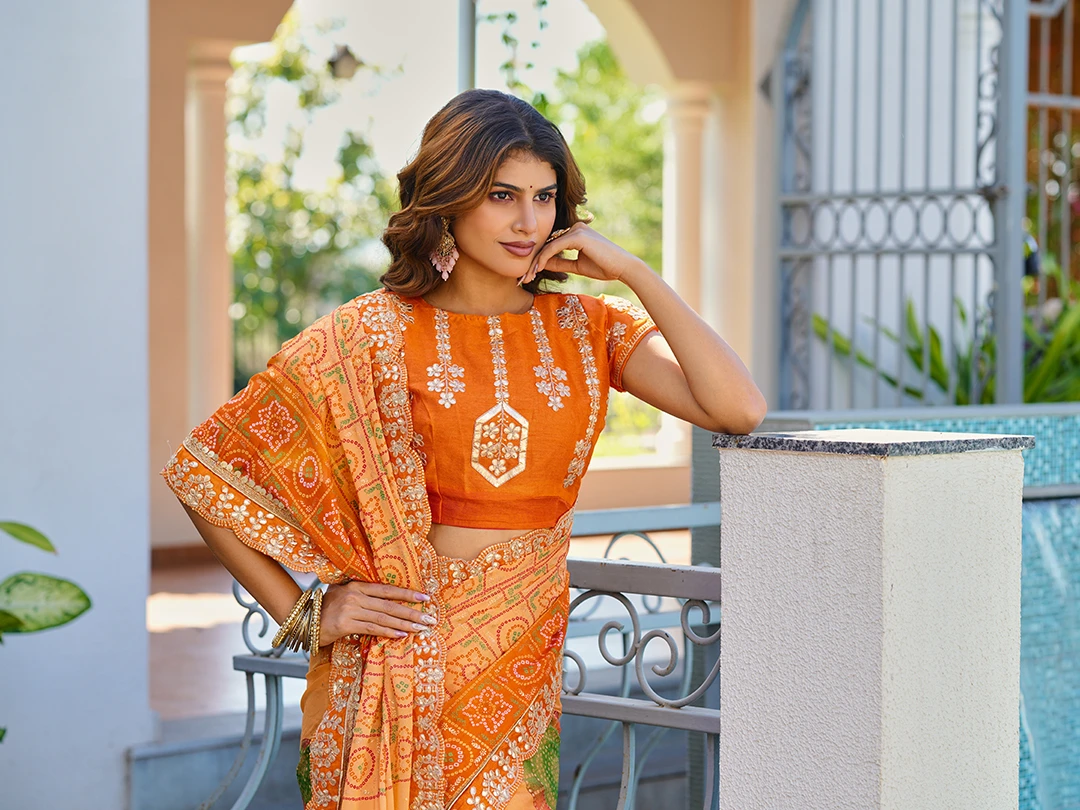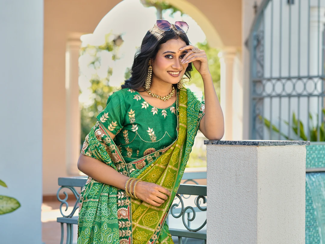 | Saree | Heavy Moss Chiffon Fancy Print Bandhani with Heavy Work |