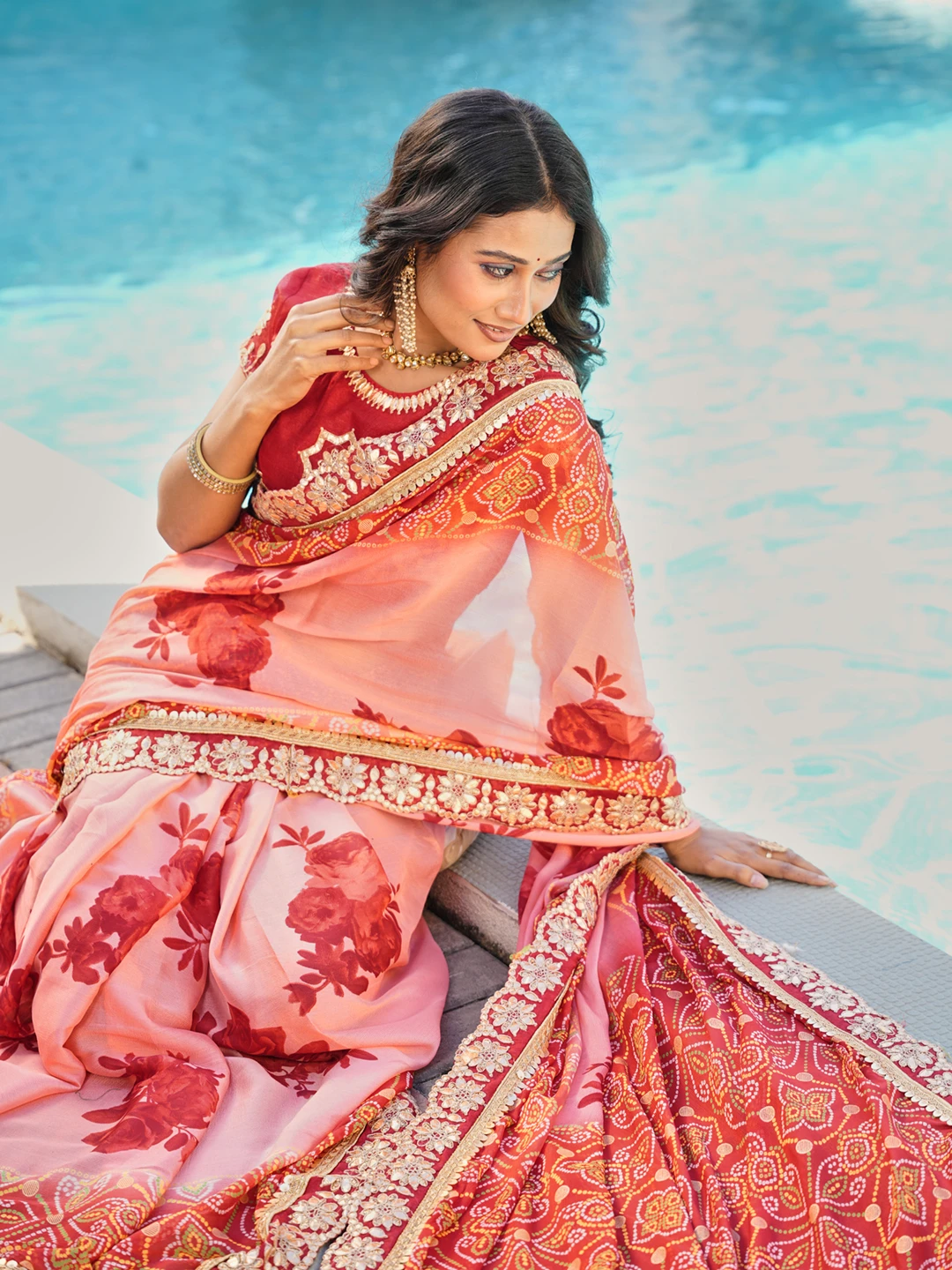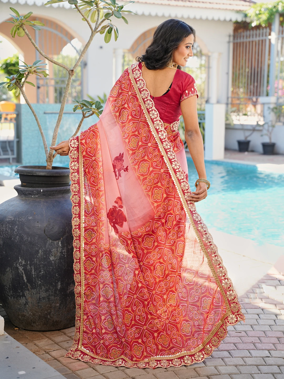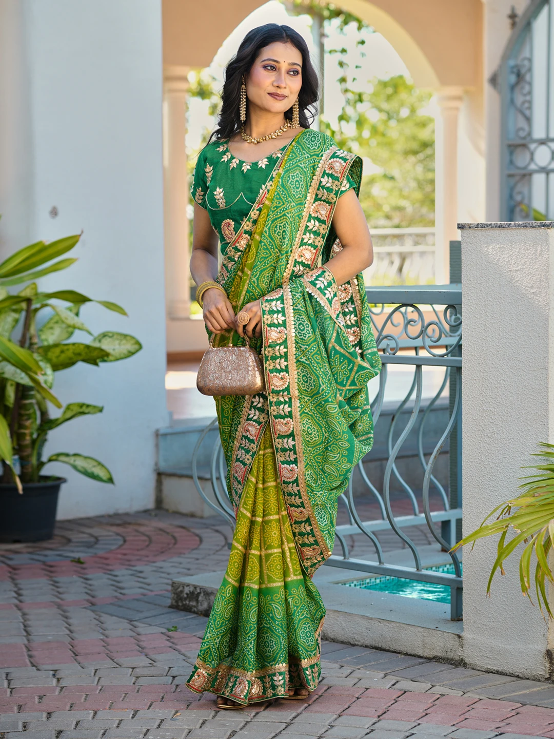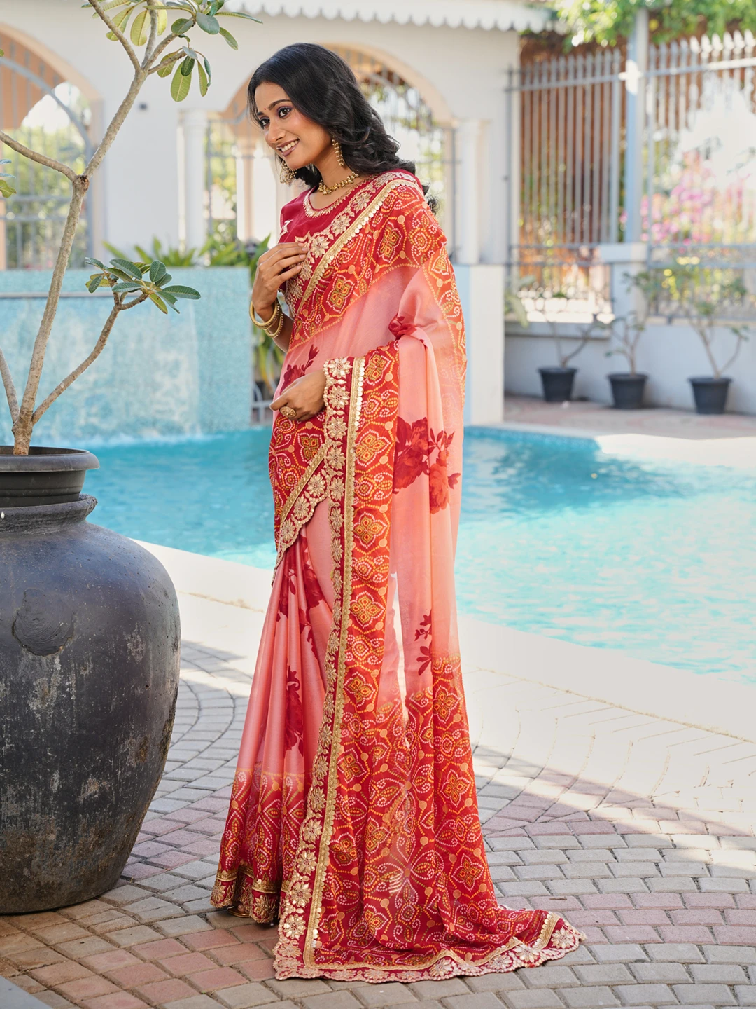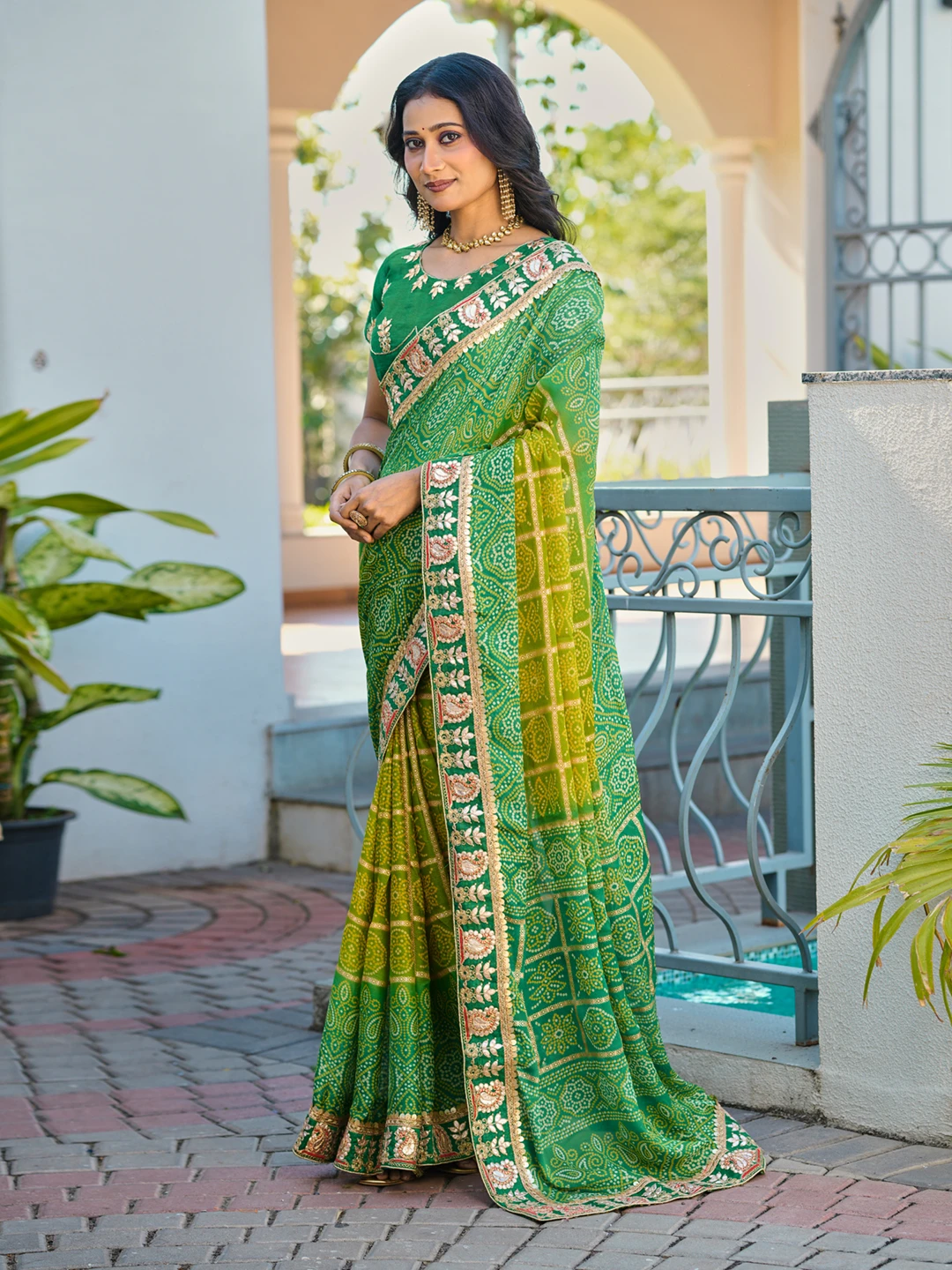 | Saree | Heavy Moss Chiffon Fancy Print Bandhani with Heavy Work |