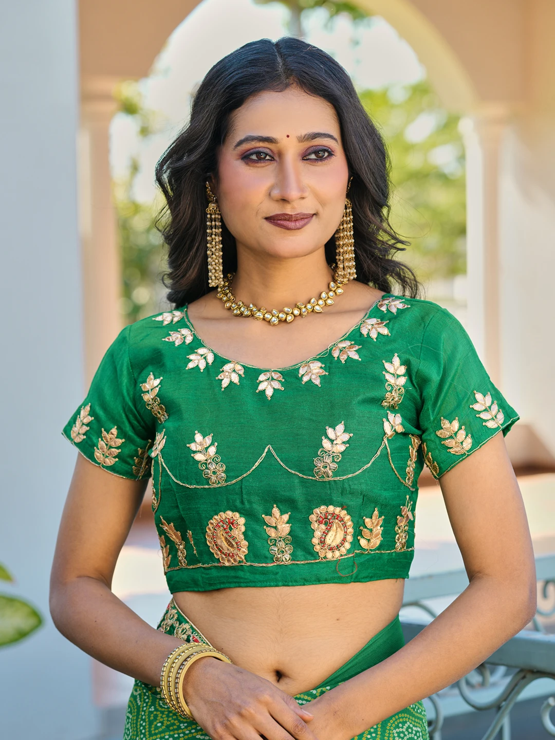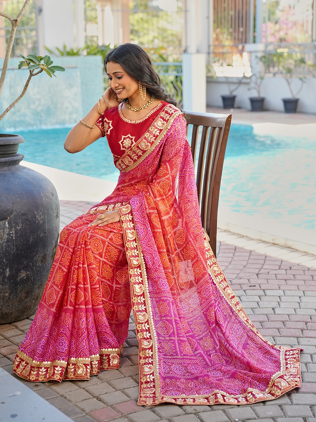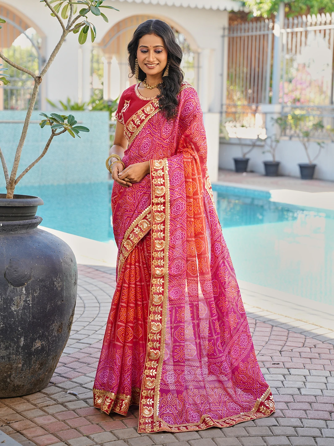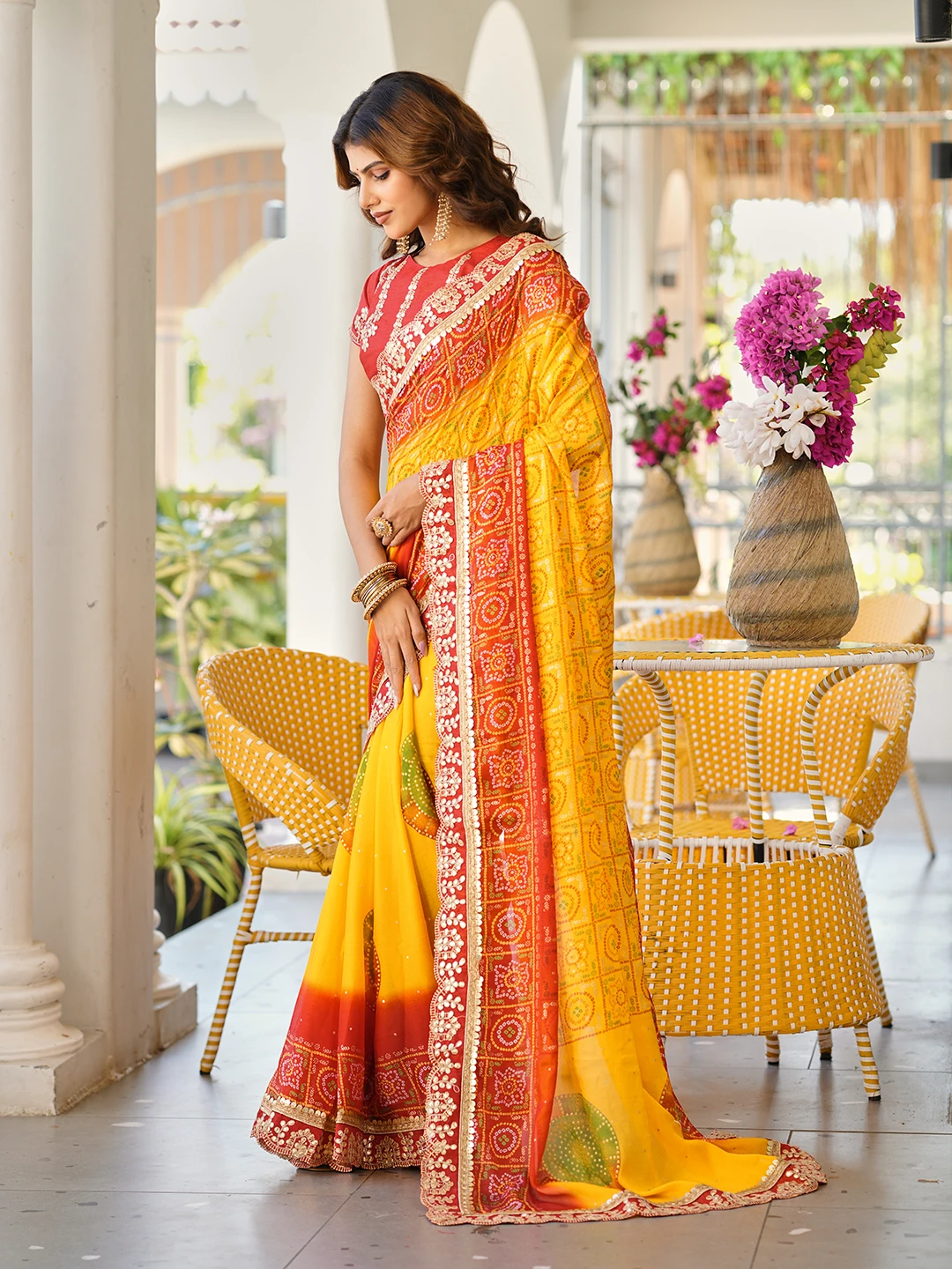 | Saree | Heavy Moss Chiffon Fancy Print Bandhani with Heavy Work |