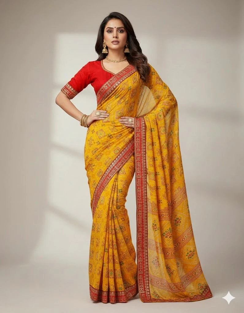 Karwachauth Georgette Bandhani Printed Fancy Saree Collection