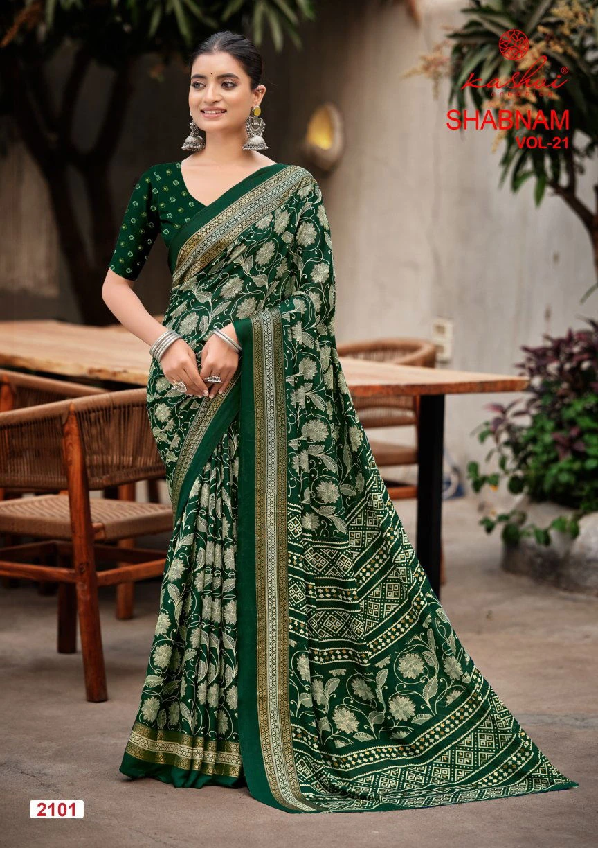 Kashvi Shabnam Vol 21 Dull Moss Foil Printed Fancy Saree Collection