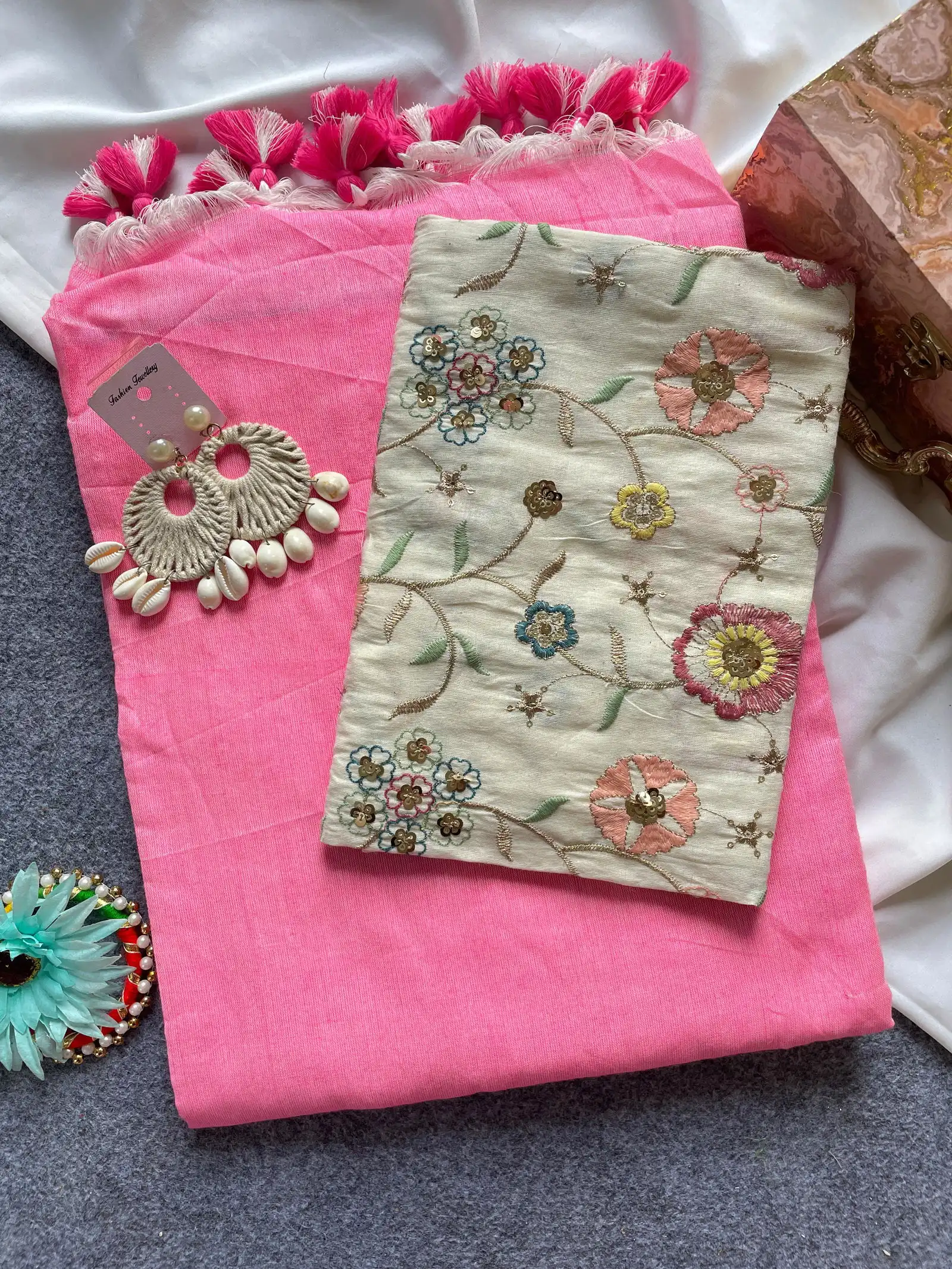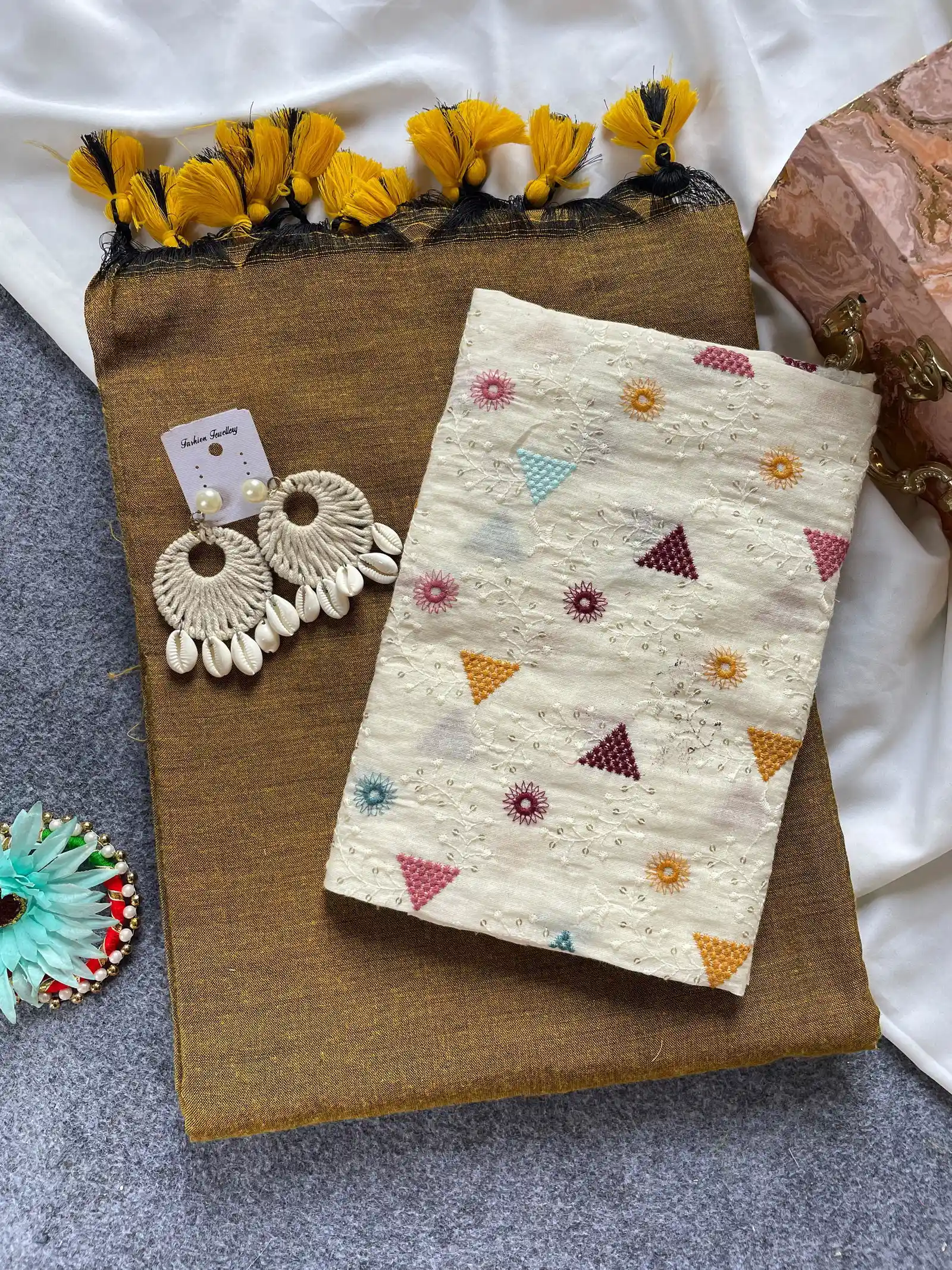 Product Name: Khadi Vol 6 Cotton Saree with Blouse Embroidery Work Collection