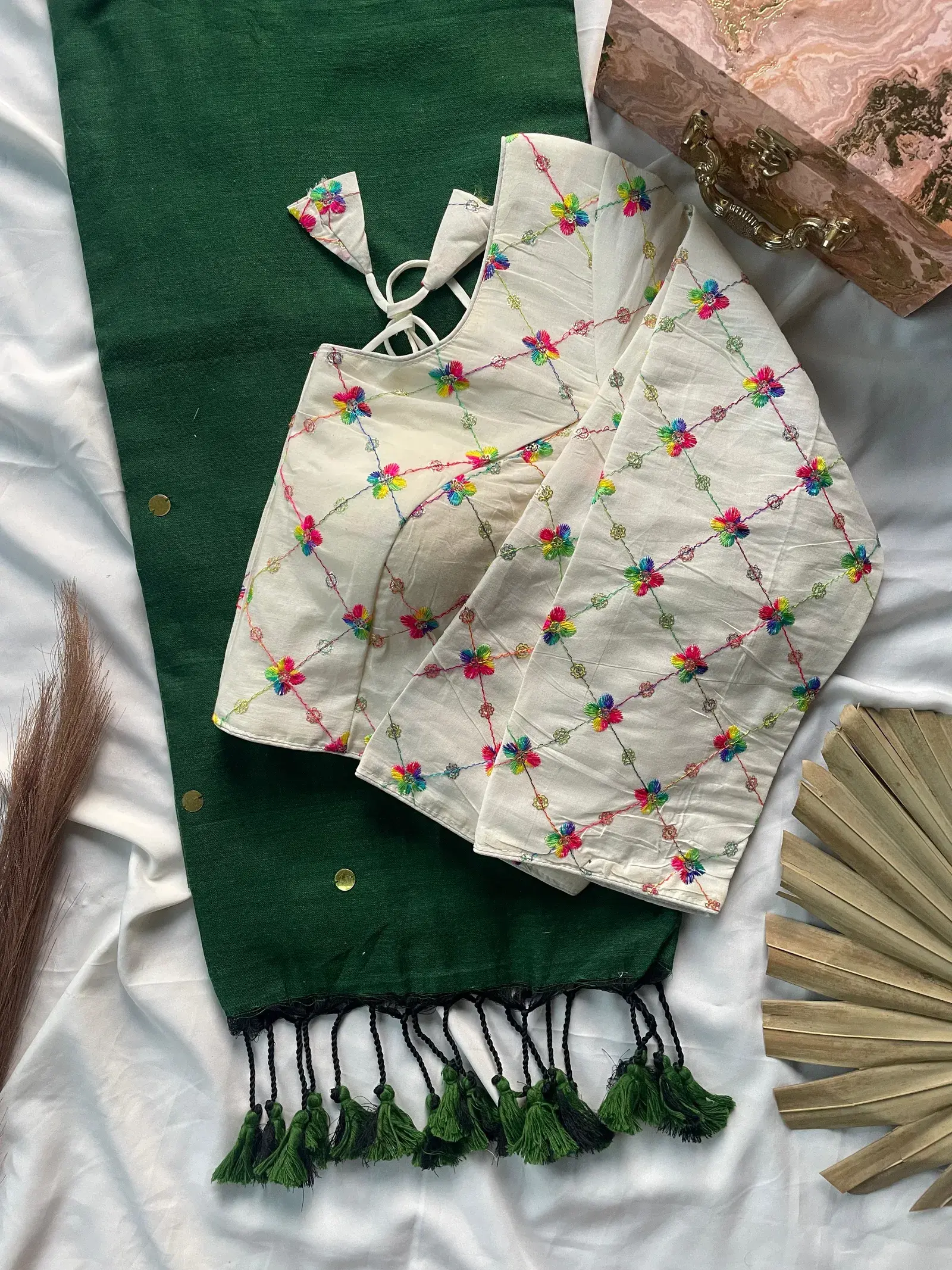 | Blouse | Pure Khadi Blouse with Work ( Size 38 Alterable Upto 42) |