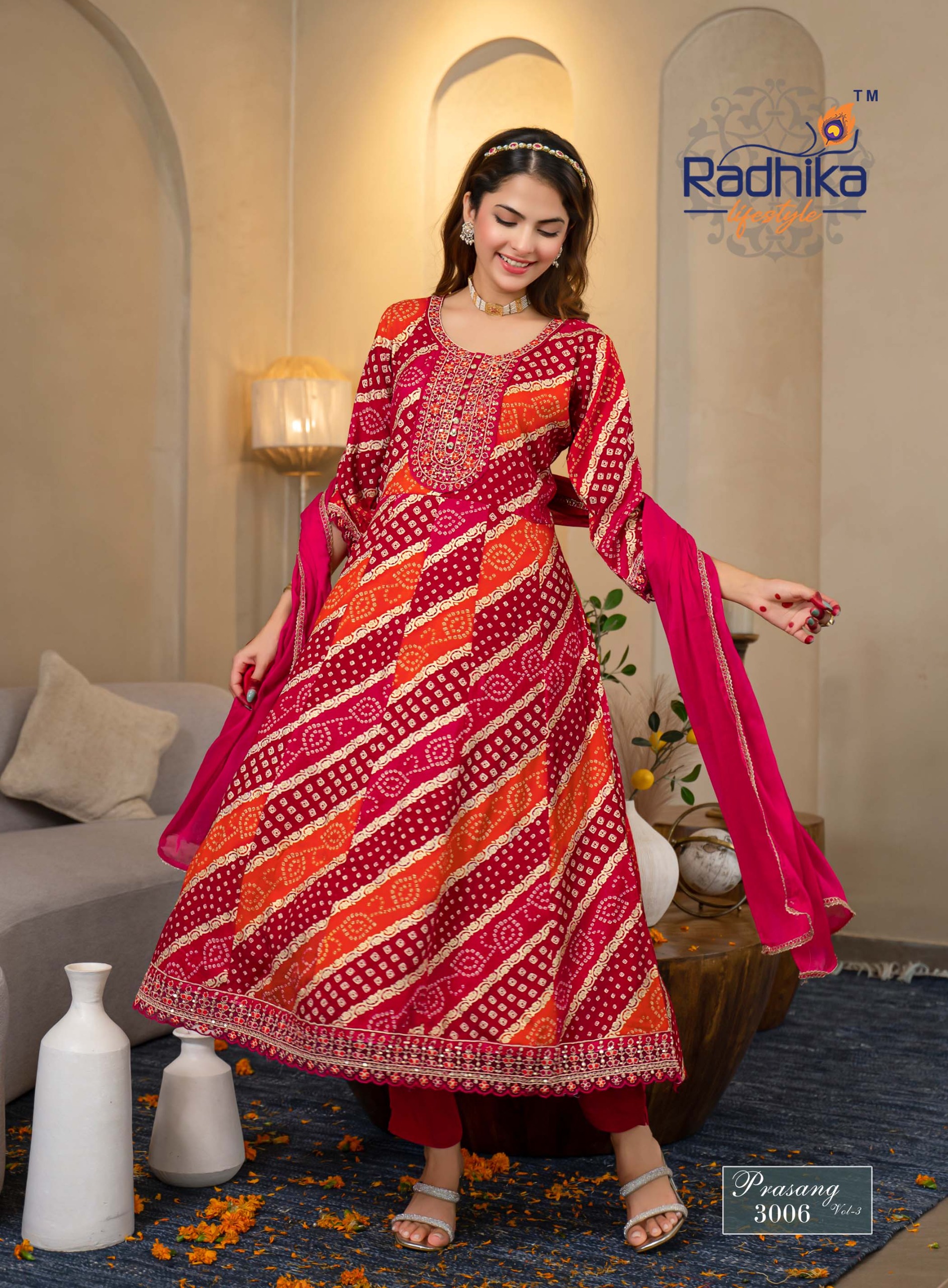 Radhika Prasang Vol 3 Rayon Print Embroidery Wholesale Kurti Pant and Dupatta Collection