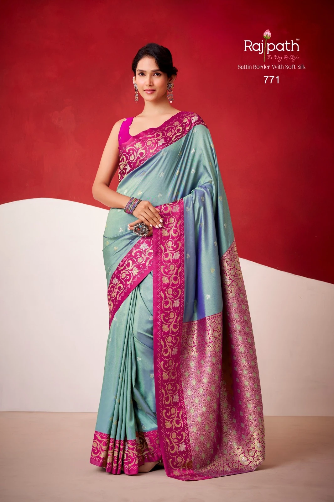 Product Name Rajpath Sindhu Ghat Zari Weaving Satin Silk Saree Collection