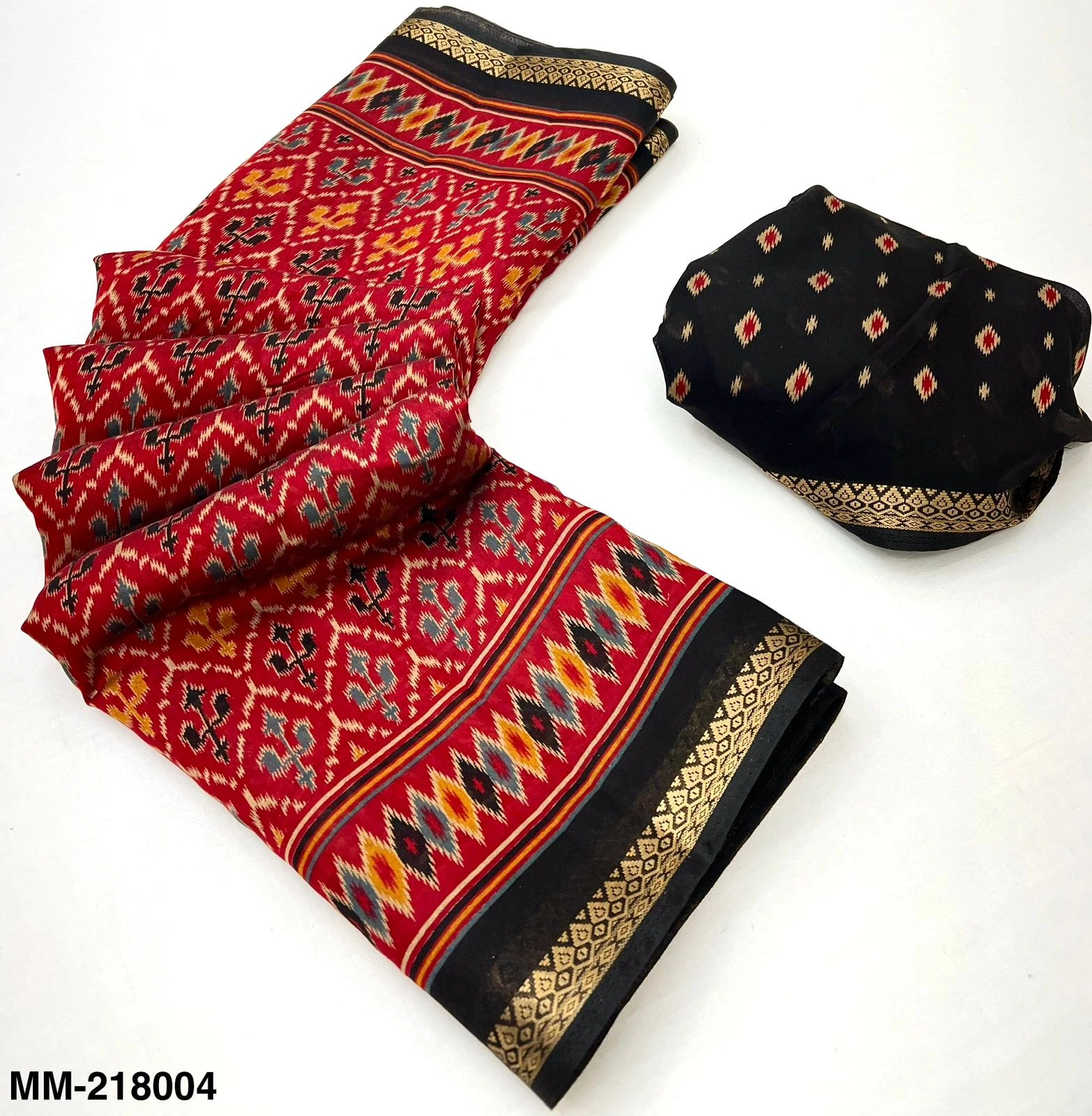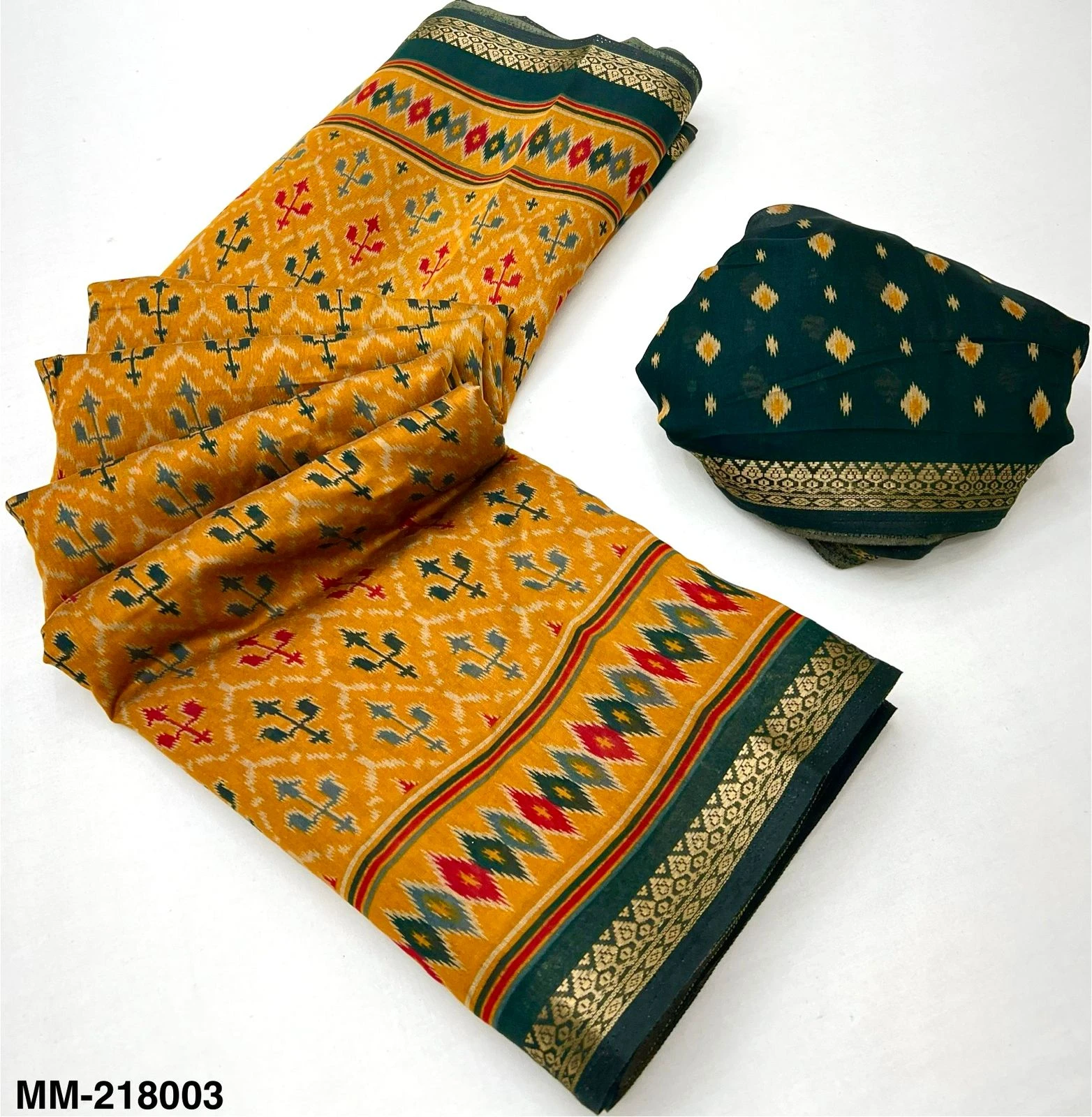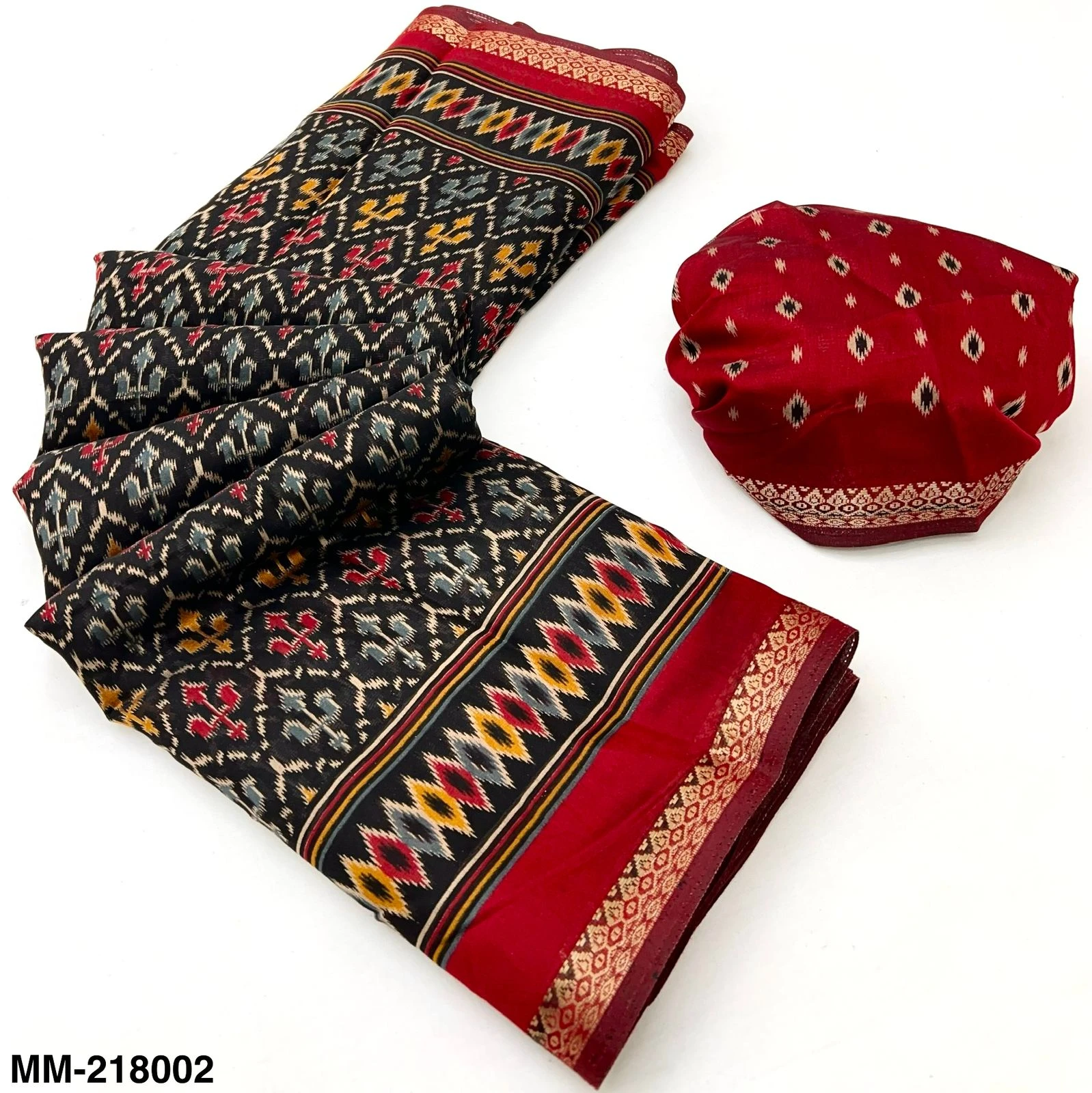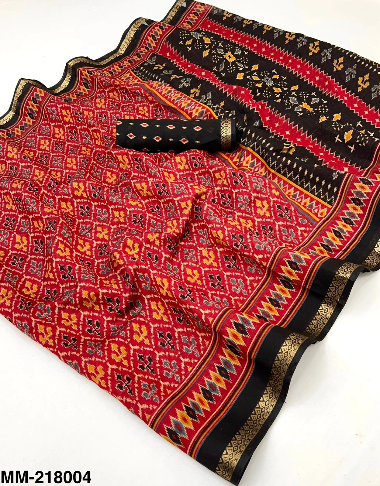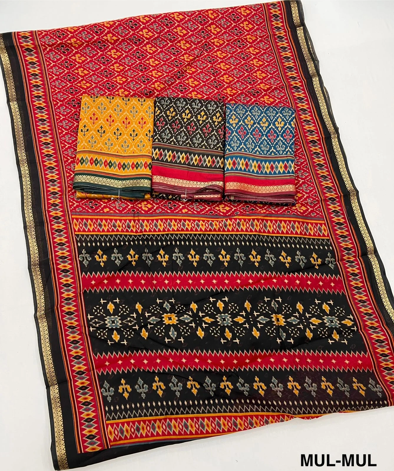 | Fabric | Soft Mul Cotton with Trending Patola Print & Beautiful Pallu & Zari Border |