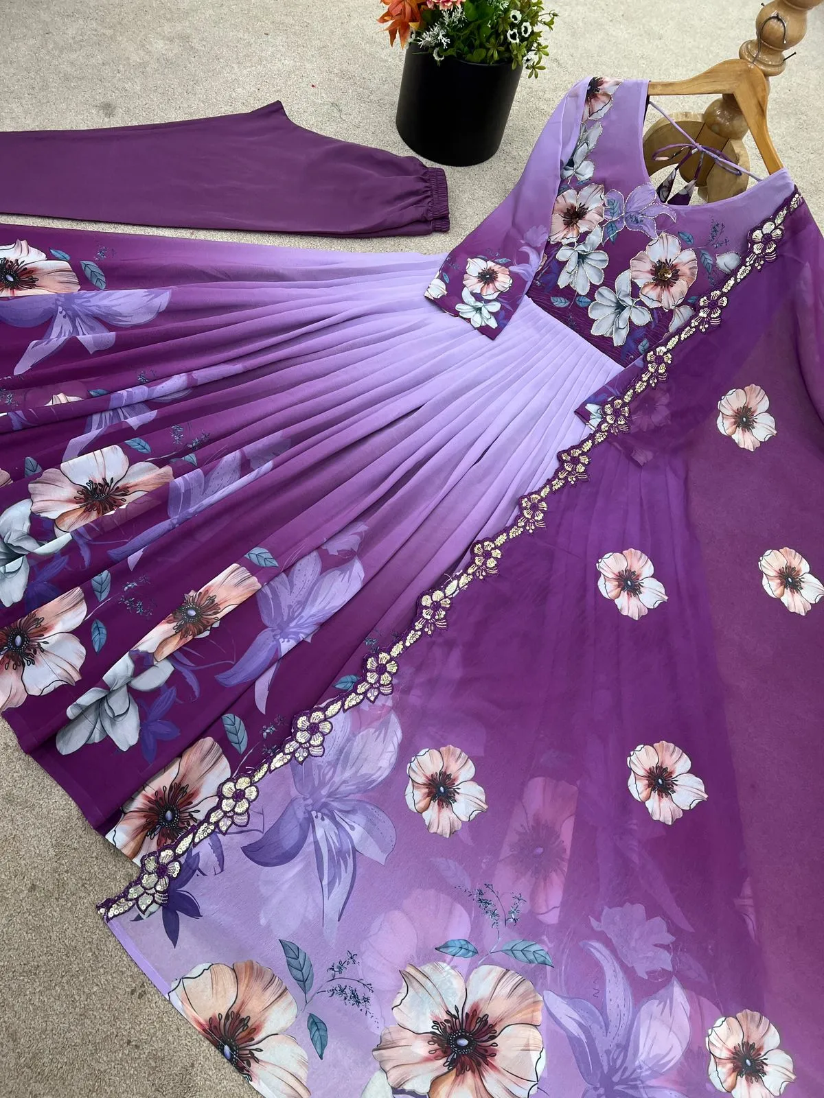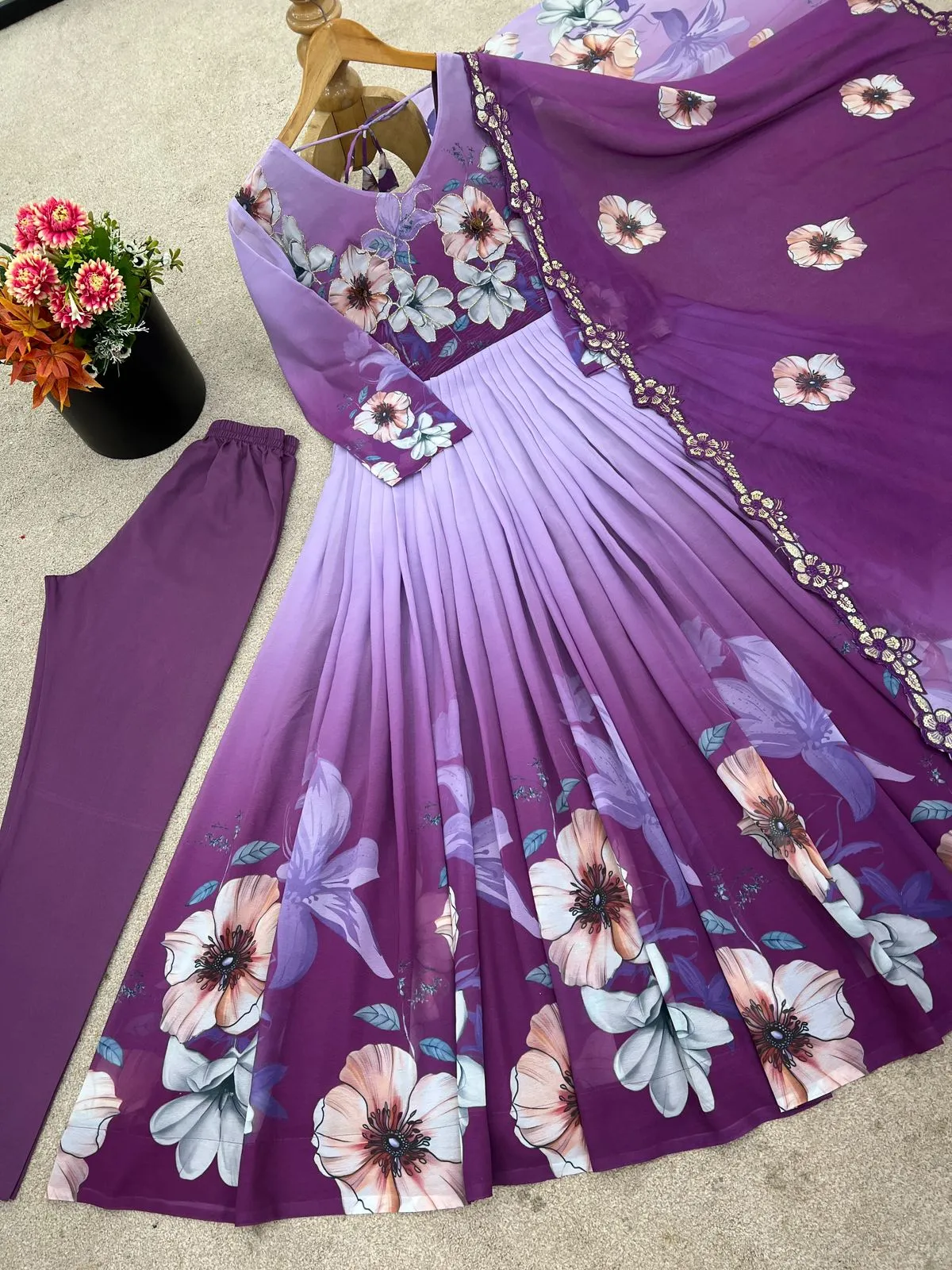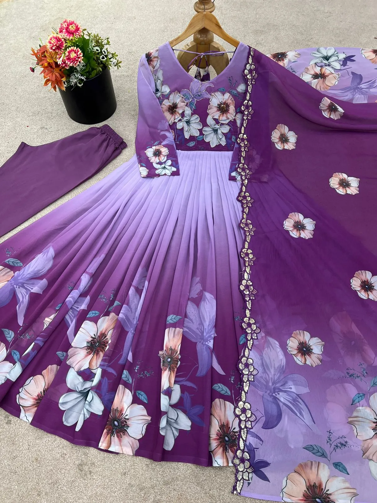 | Gown | Faux Georgette with Embroidery Work with Fully Flair and Heavy Micro Cotton Inner |