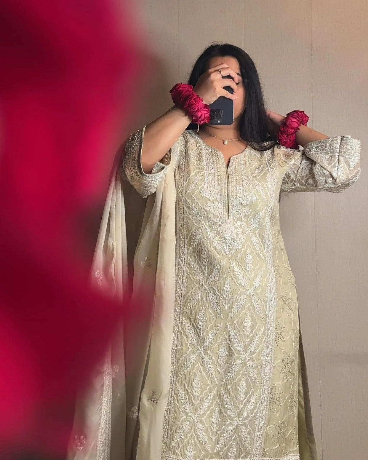 | Bottom | Heavy Faux Georgette with Embroidery Lace Border with Elastic with Micro Cotton Inner |