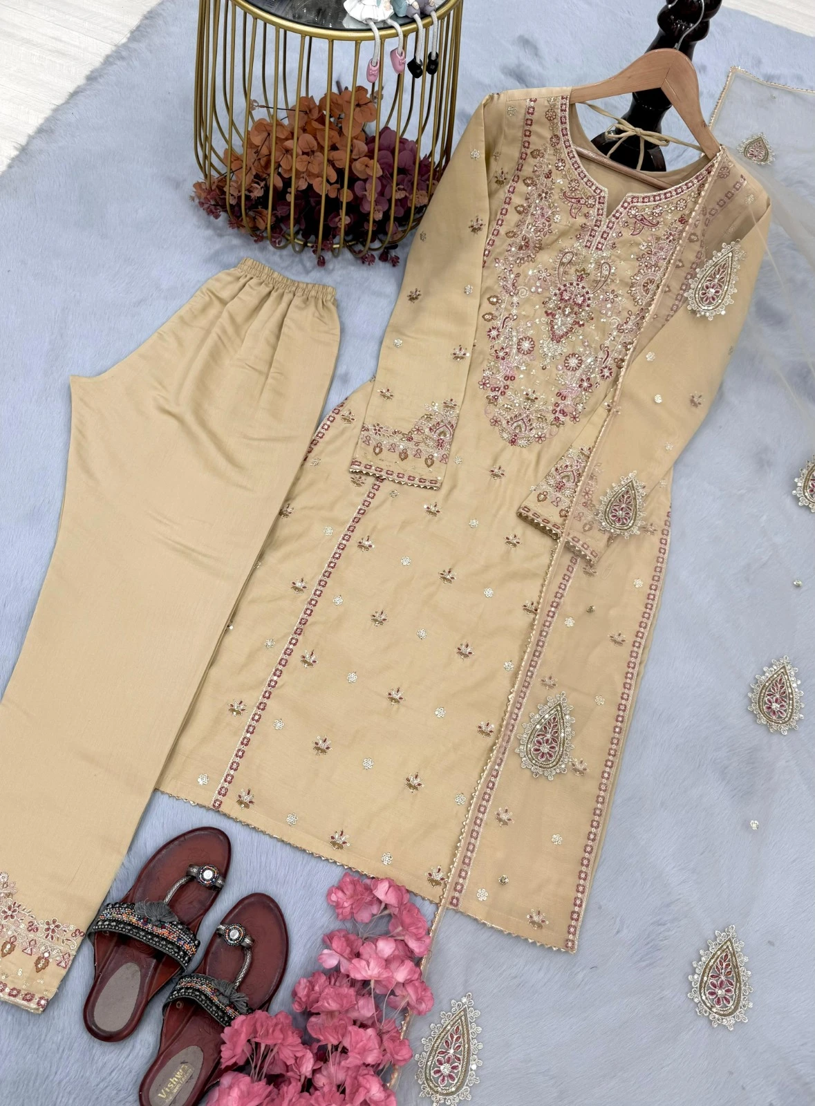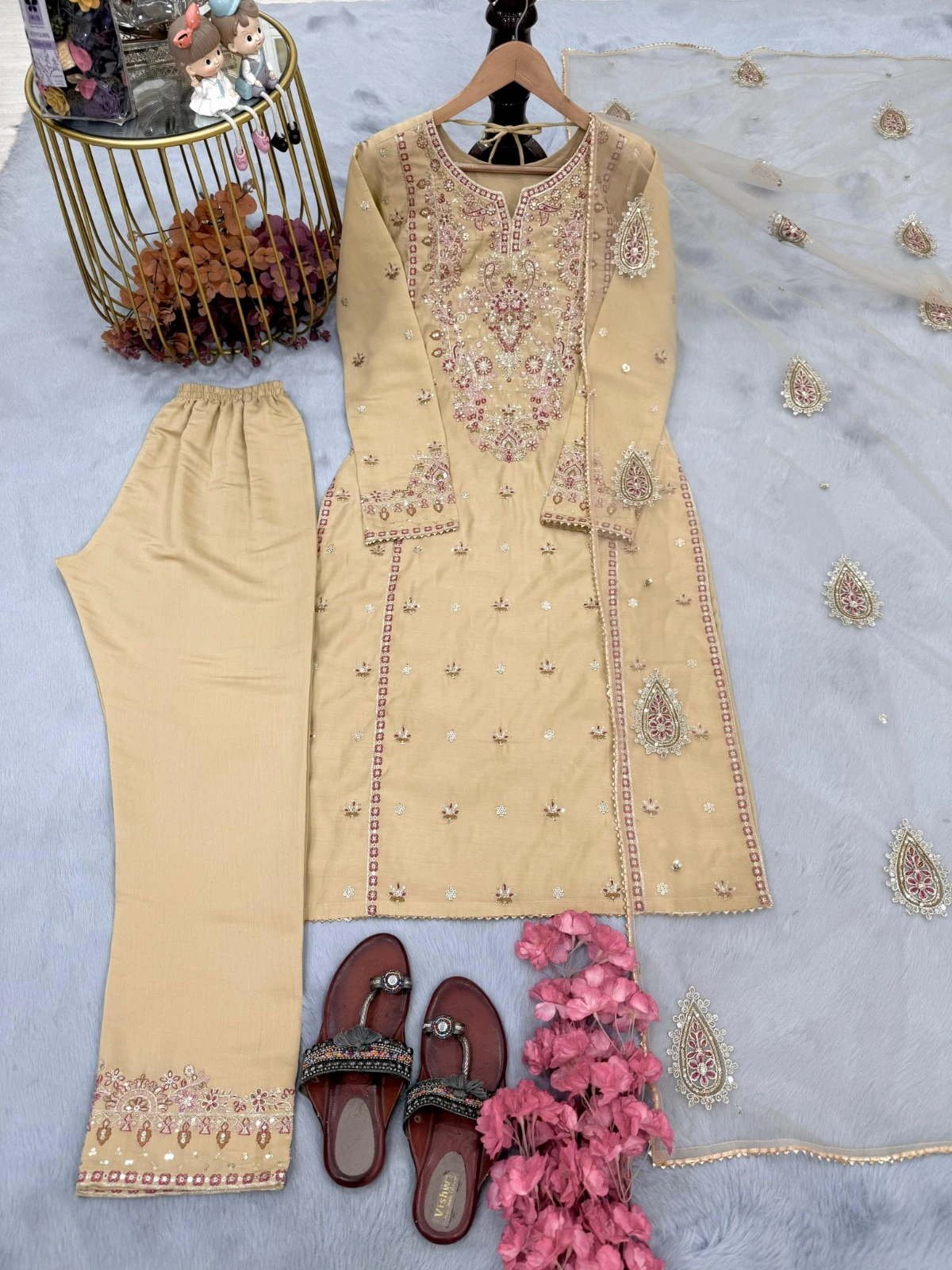 | Bottom | Heavy Pure Roman Silk with Embroidery 5 mm Sequence work With Elastic |