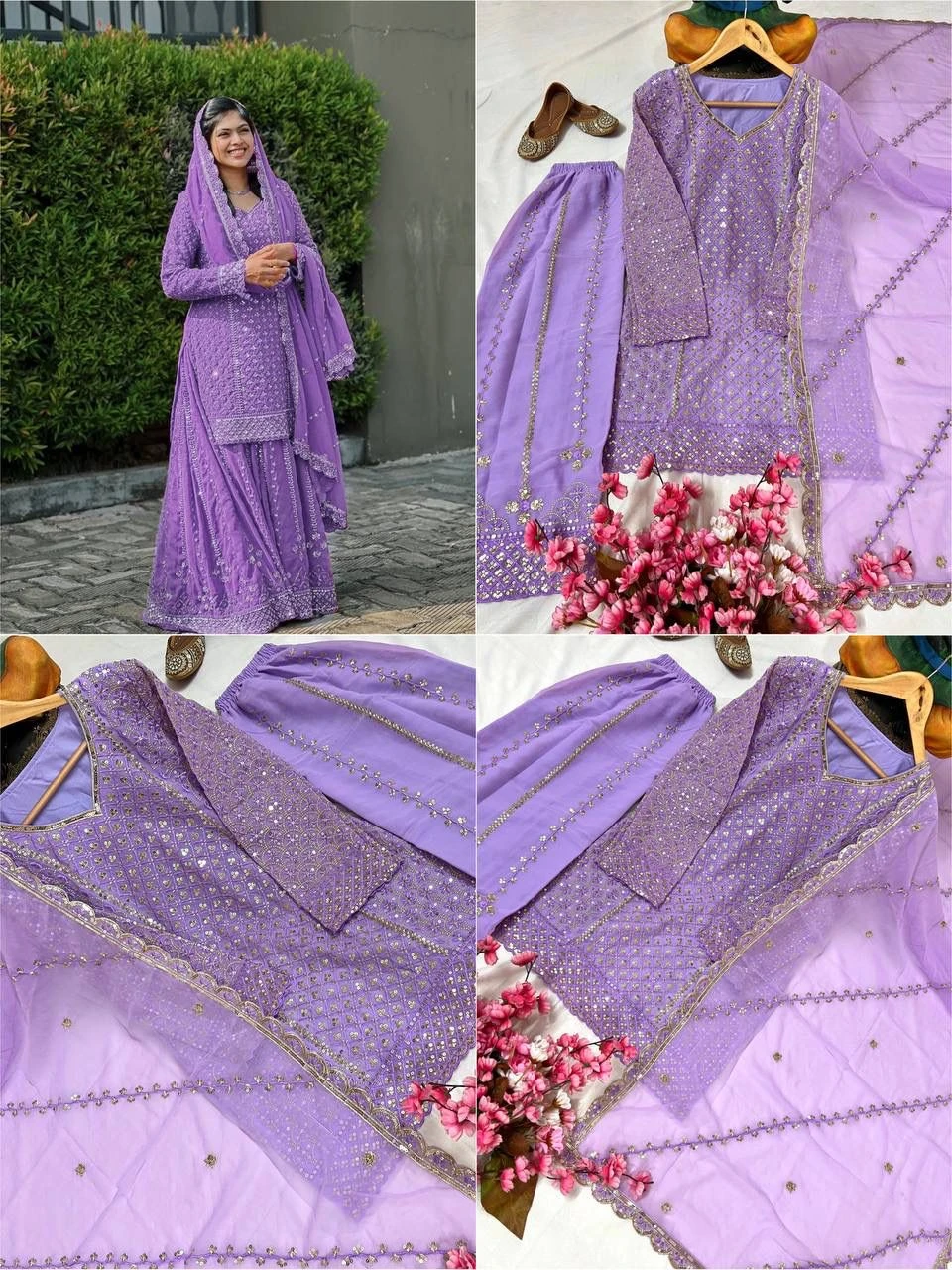 | Sharara | Heavy Georgette With 5mm sequins and zari Embroidery work |