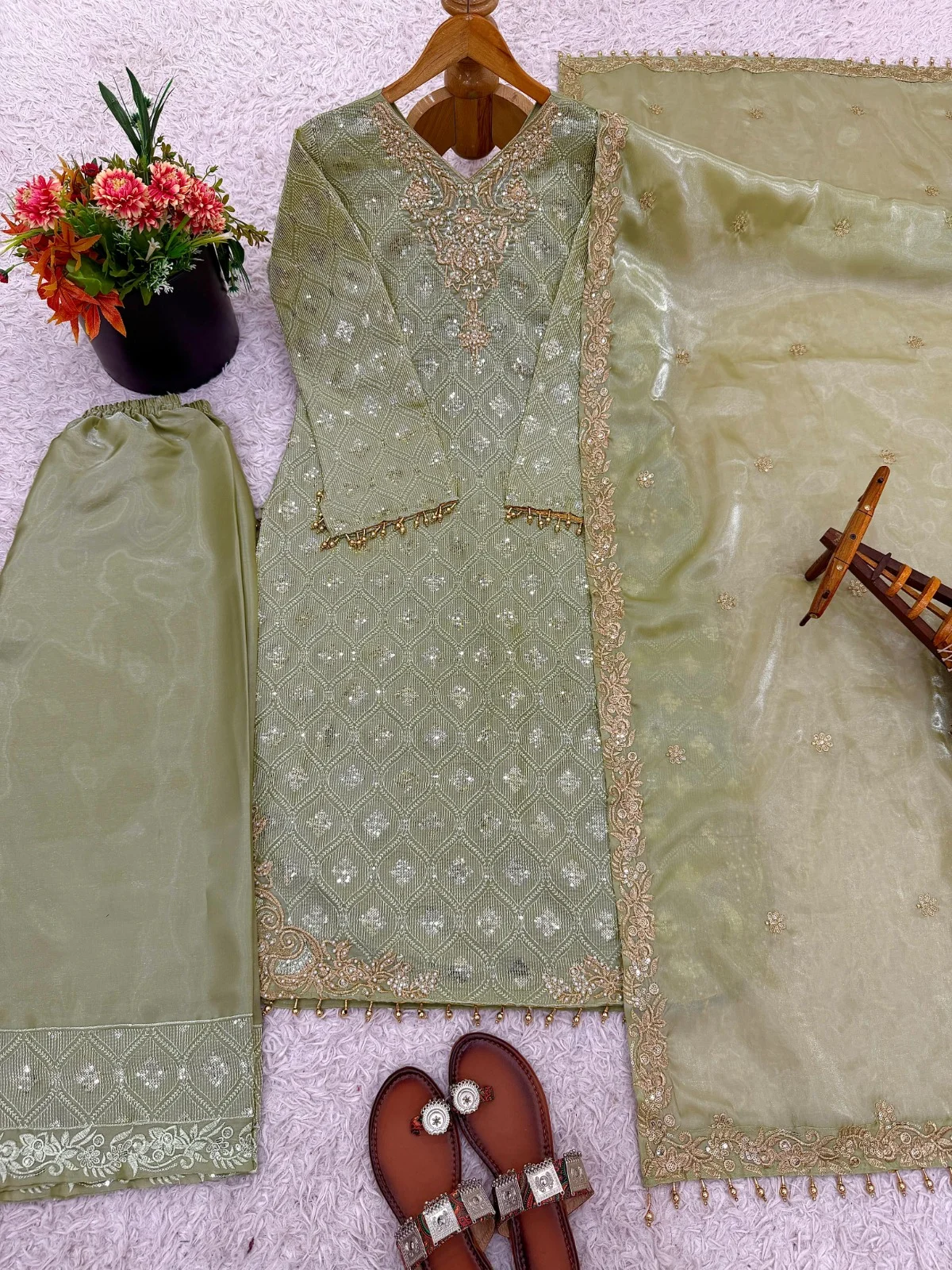 | Bottom | GMY SILK With Embroidery Sequence Work with Elastic |