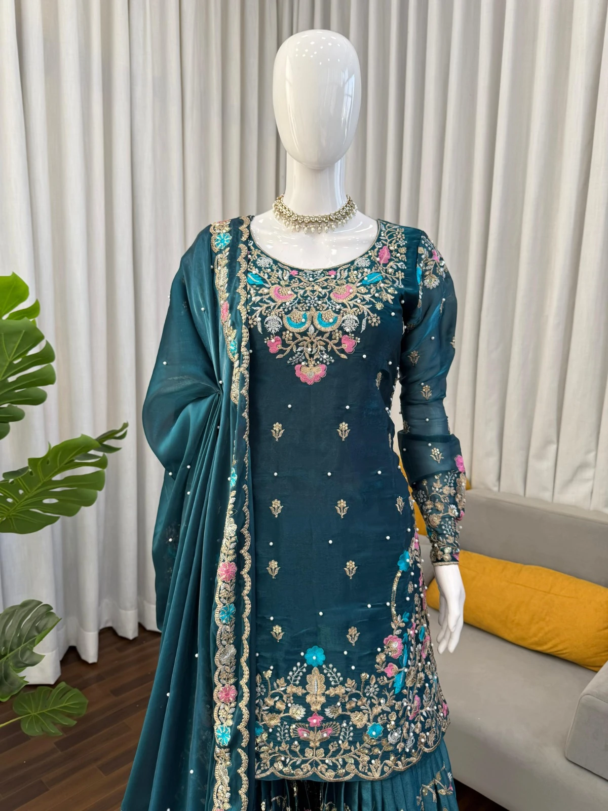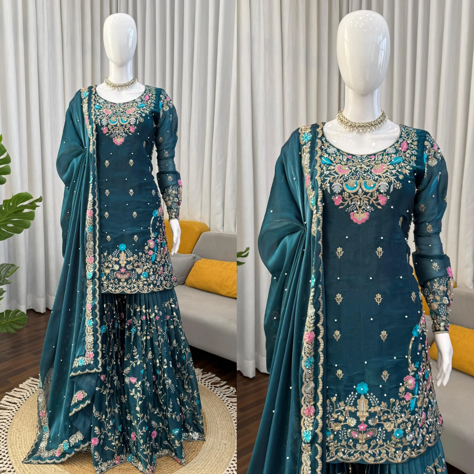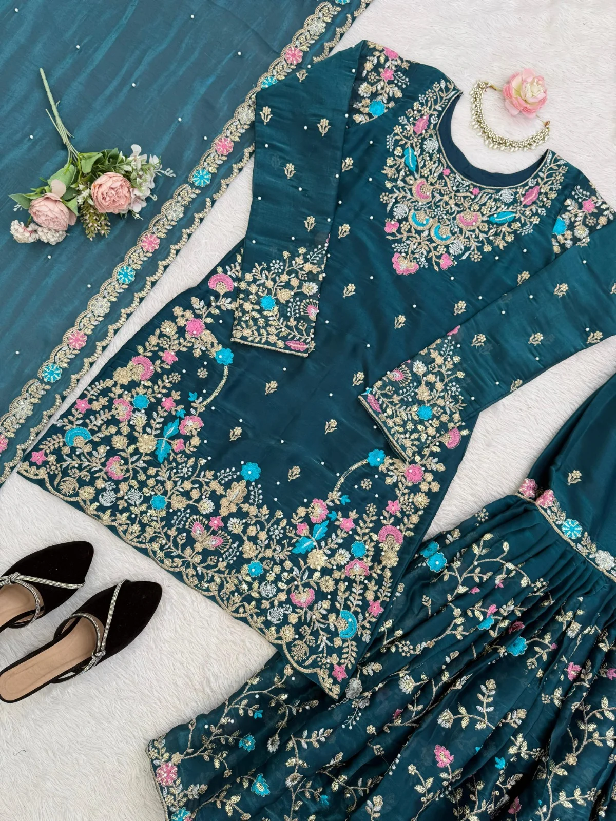 | Sharara | Pure JMC silk Thread with Sequence with rivet Moti |
