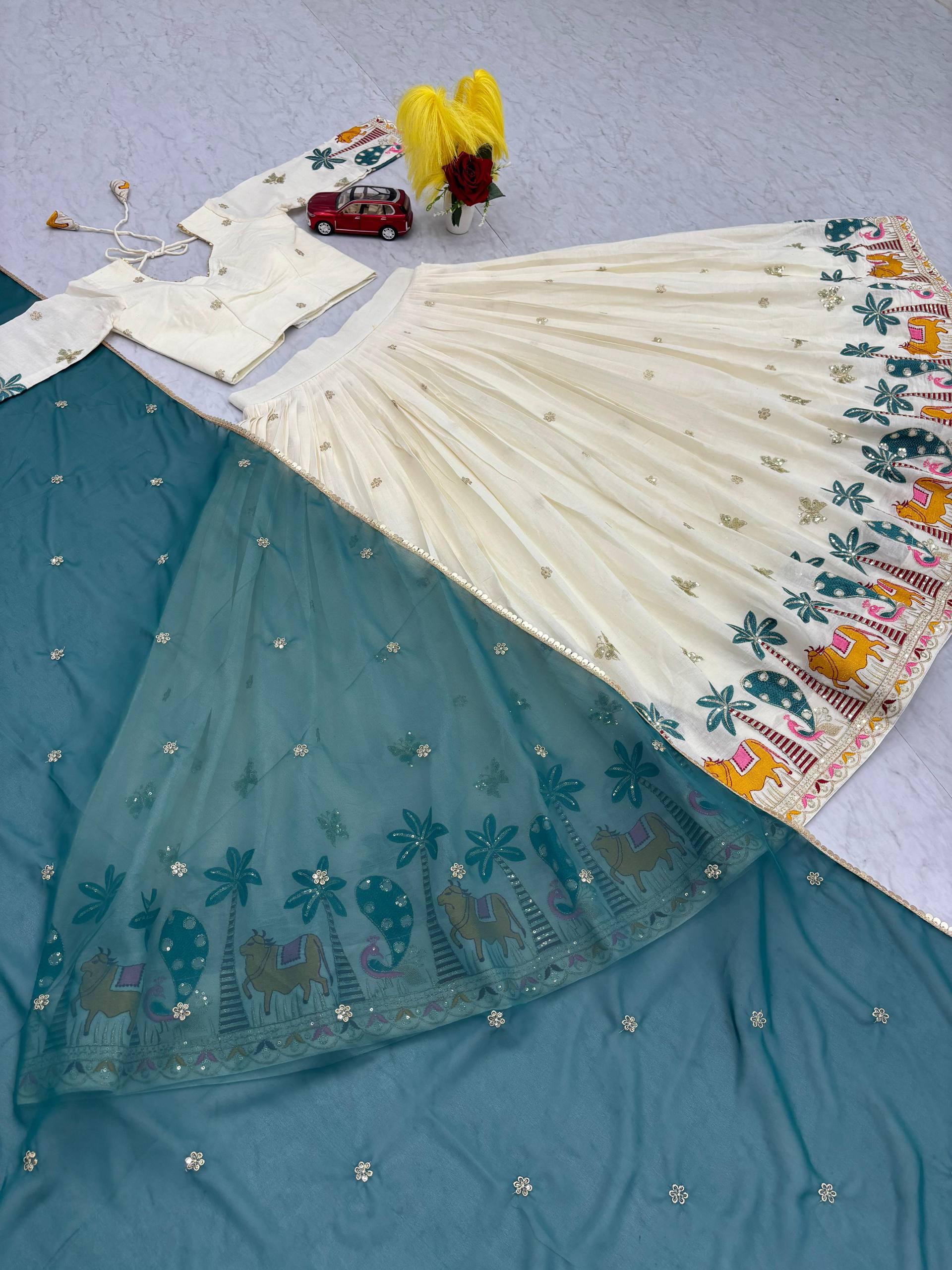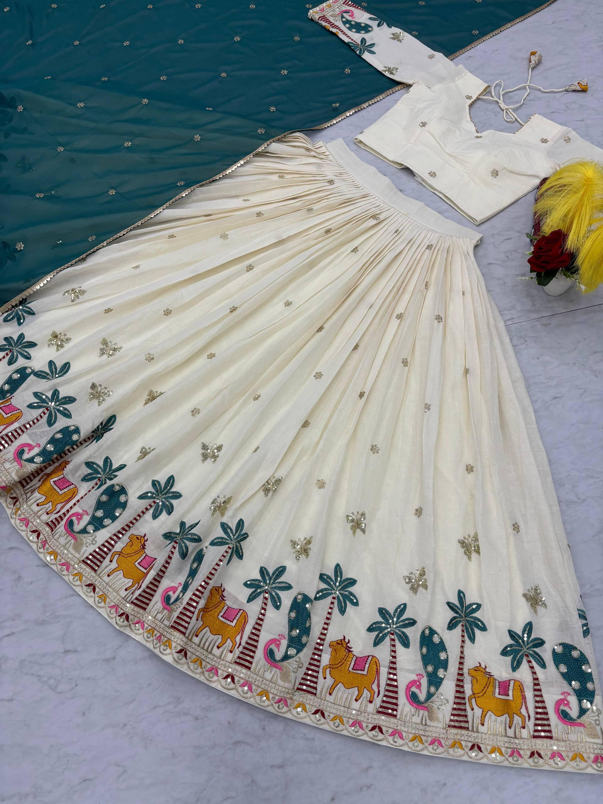 | Lehenga | Pure Cotton Heavy Embroidery Thread & Sequence Work with Micro Cotton Inner |