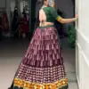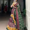 | Lehenga | Tasar Silk Print with Foil work and Real Mirror Gamthi work with Lace Touch up |