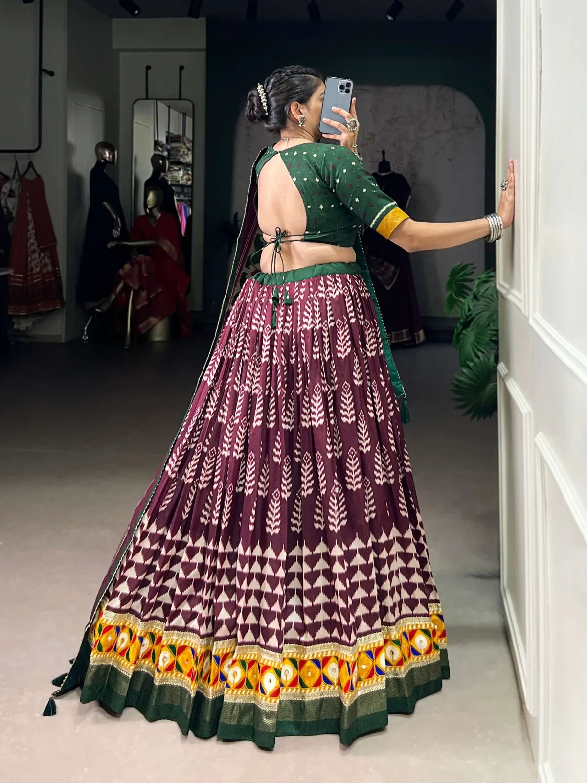 | Top | Tasar Silk Print with Foil work and Real Mirror Gamthi and Cowrie (Kodi) Lace Touch Up |