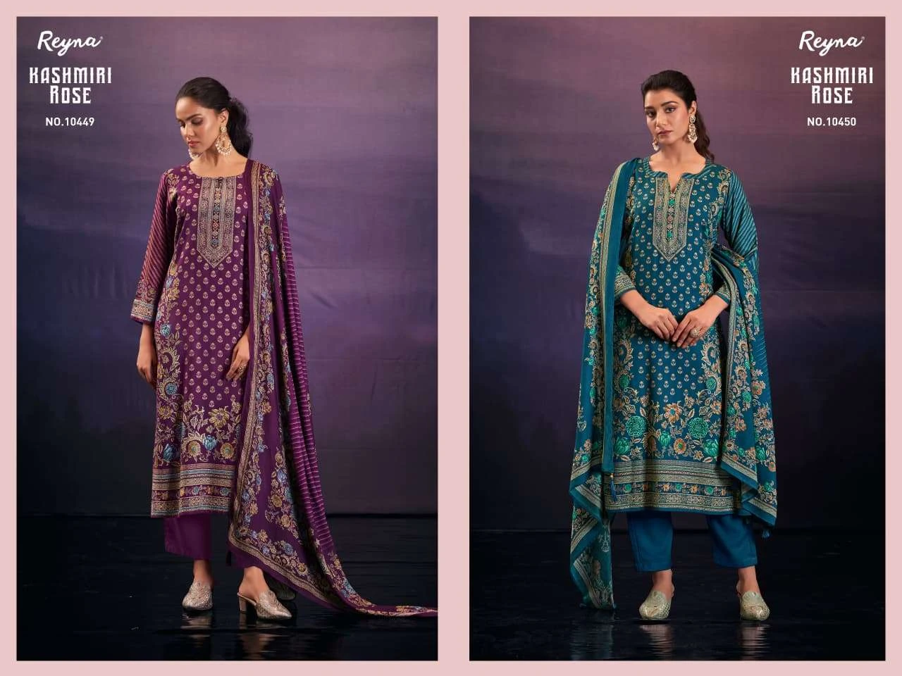 Reyna Kashmiri Rose Pashmina Fancy Work Wholesale Winter Salwar Suit Collection