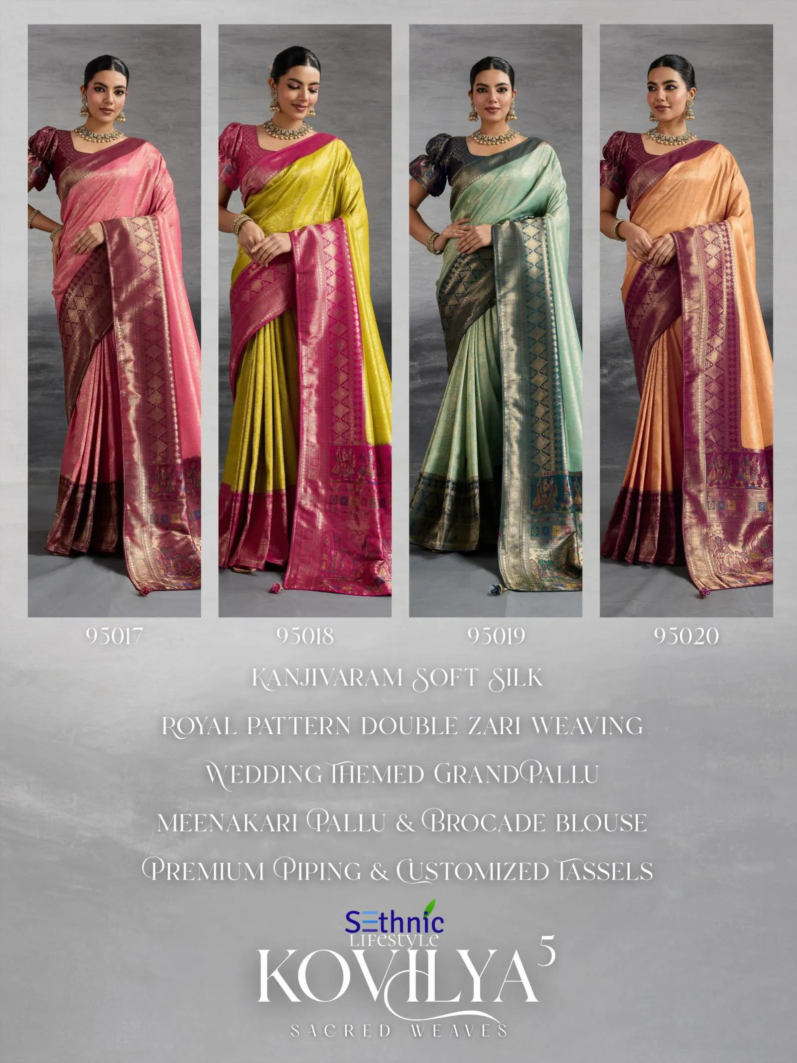 Sethnic Kovilya 5 Hand Dyed Soft Kanjivaram Silk Wholesale Sarees Collection