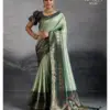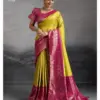 | Saree | Hand Dyed Soft Kanjivaram Silk with Zari Woven Pattu, Wedding Themed Meenakari Weaving Pallu |
