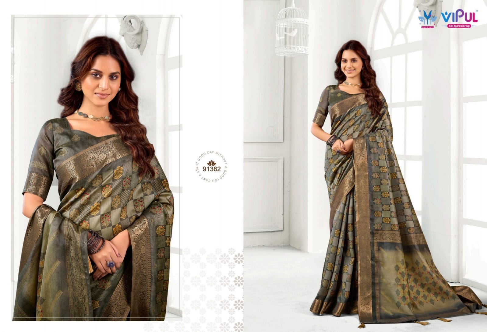 Vipul Angora silk 913I Silk Printed Wholesale Wedding Wear Saree Collection