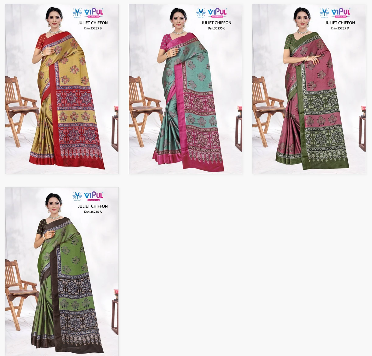 Vipul Juliet Chiffon 35235 A to D Chiffon Wholesale Sarees Collection