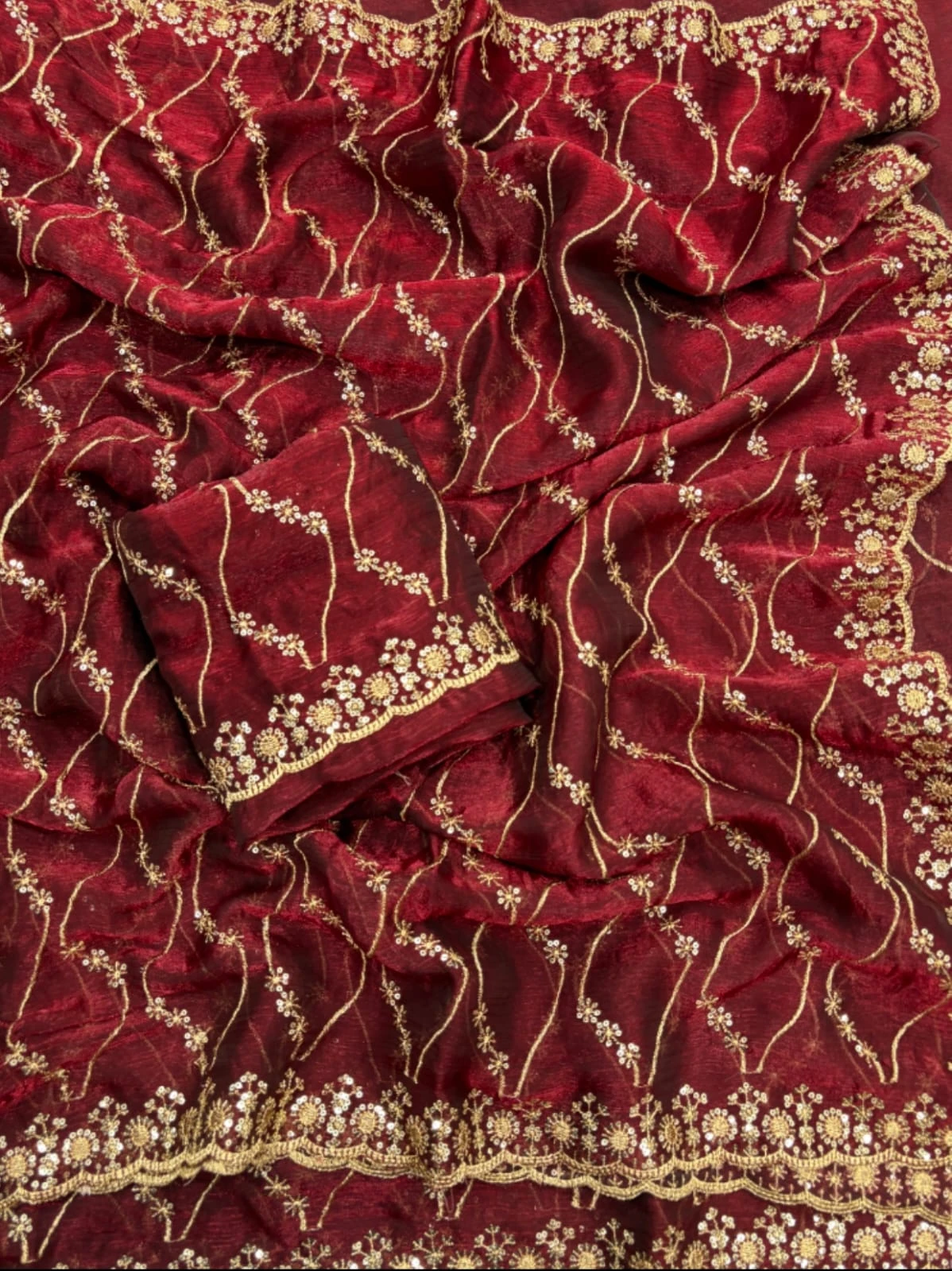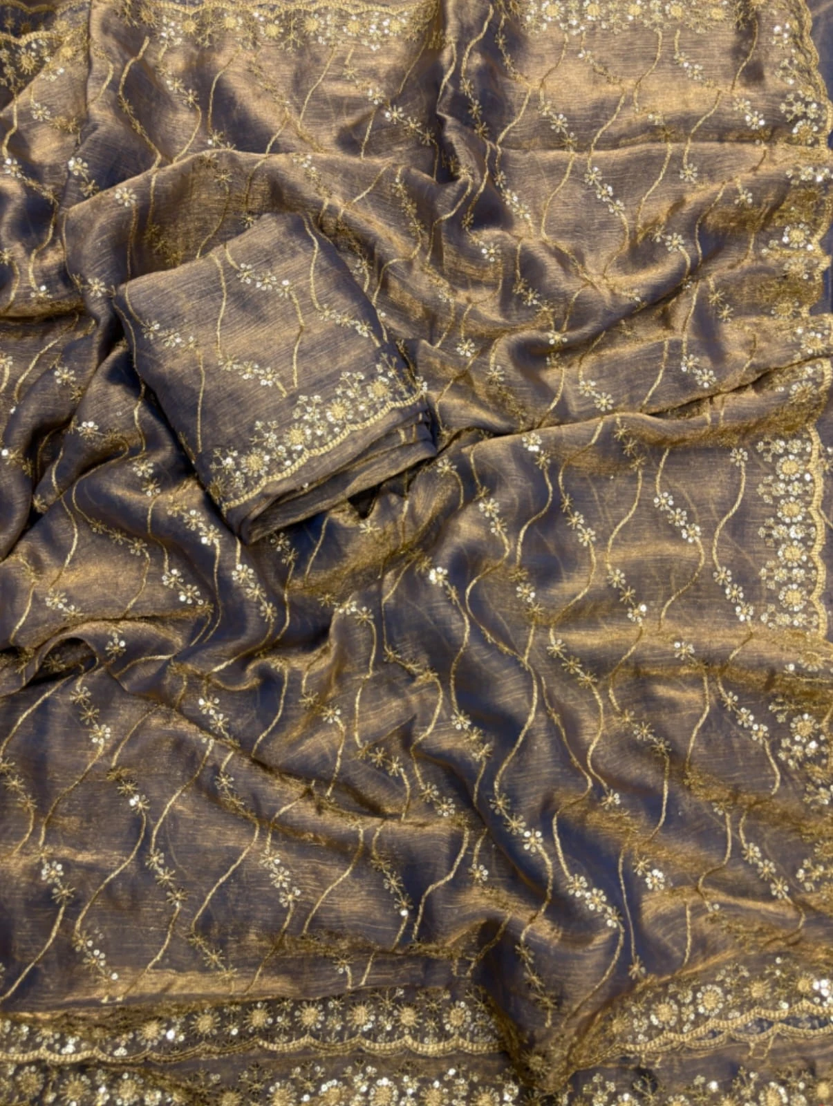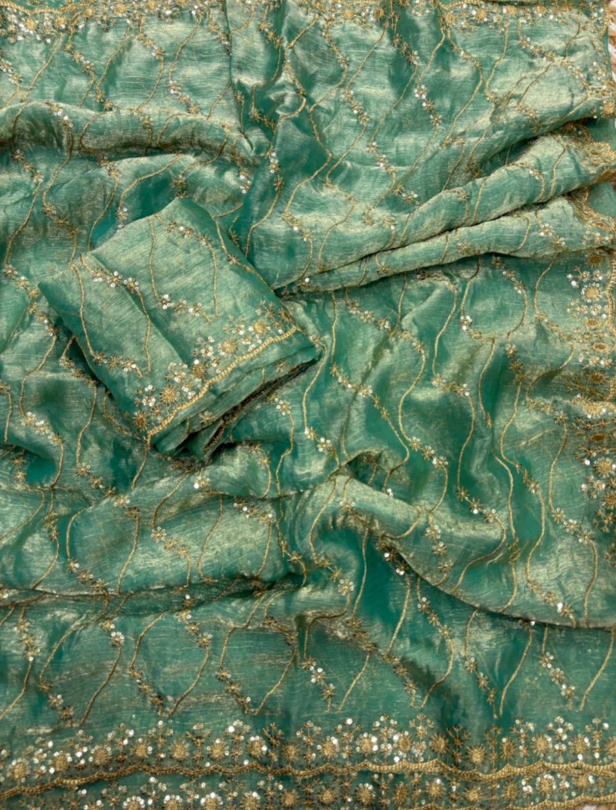 Work Golden Zari with 3 Mm Sequins Work