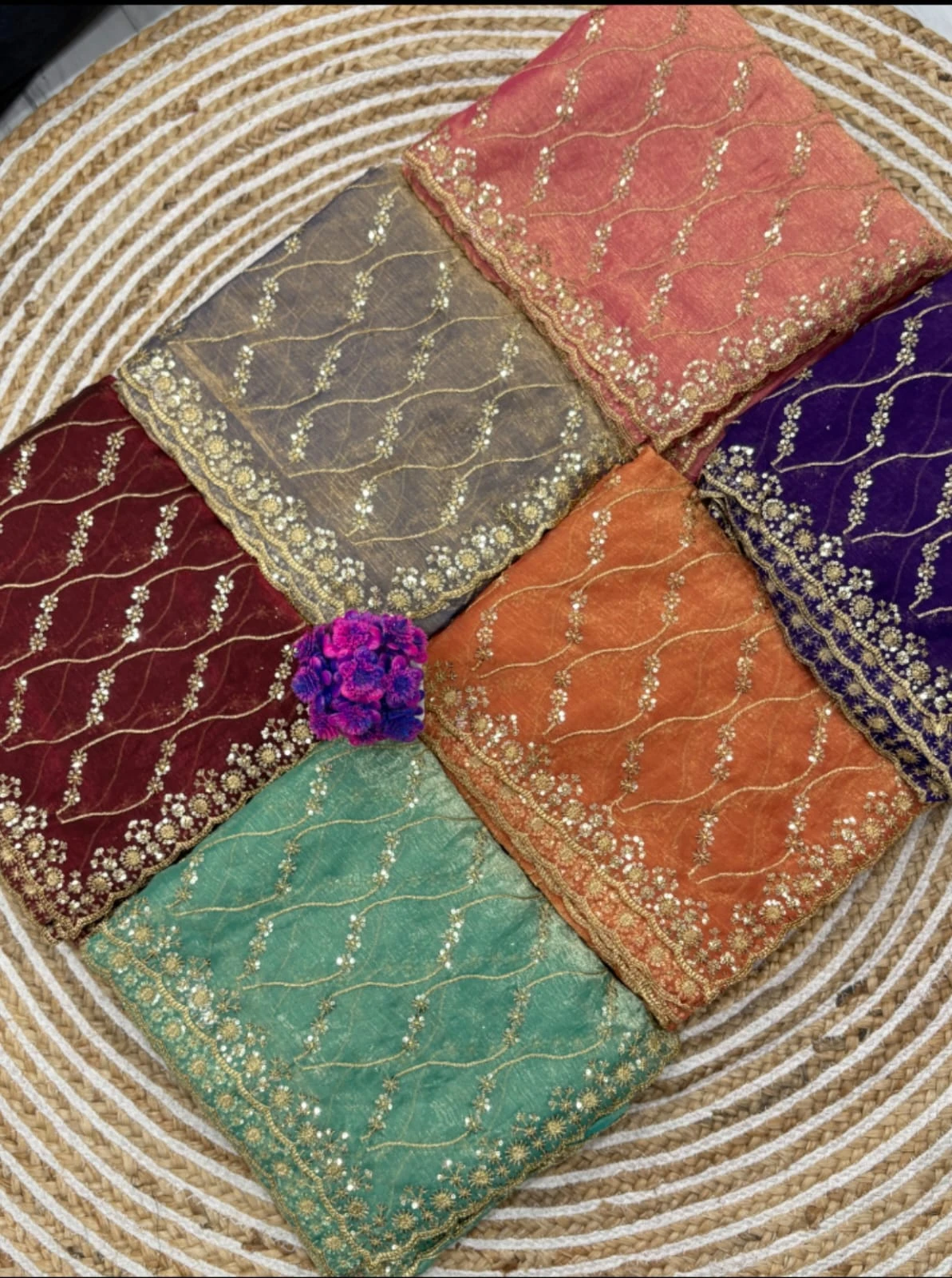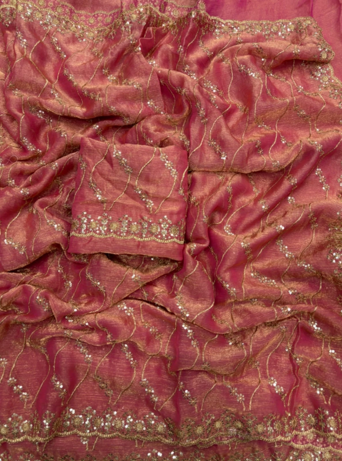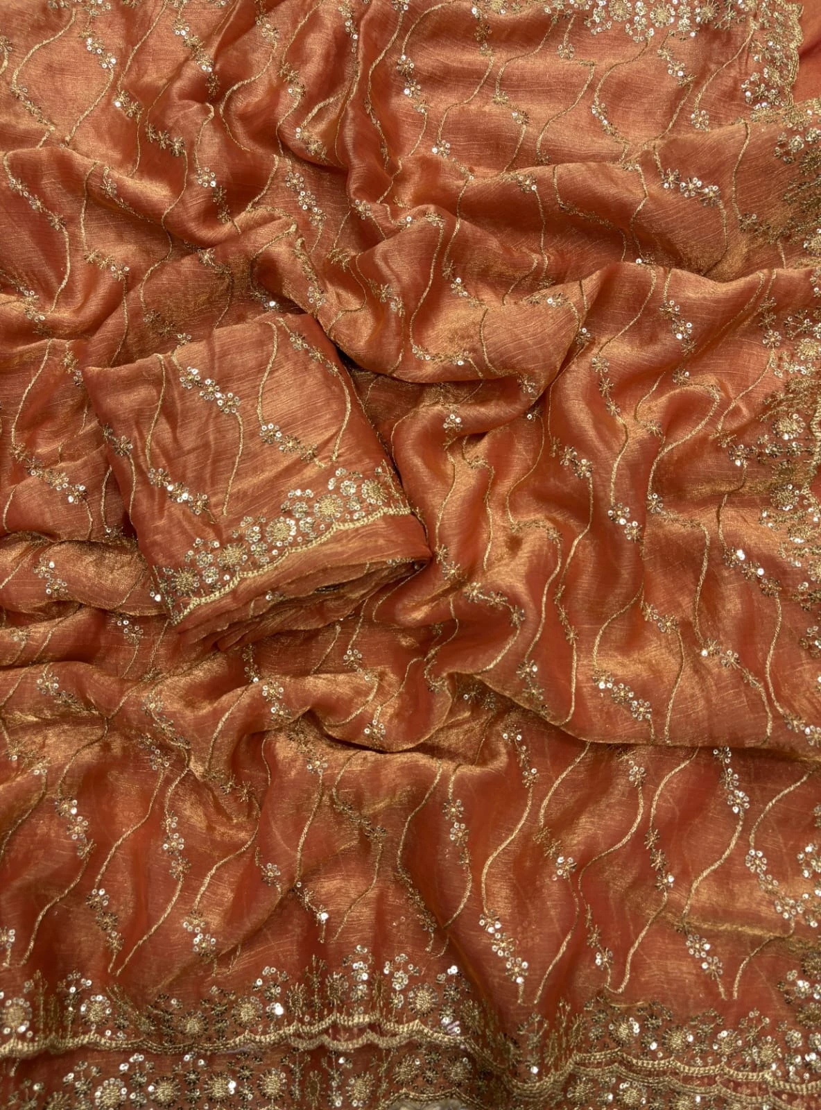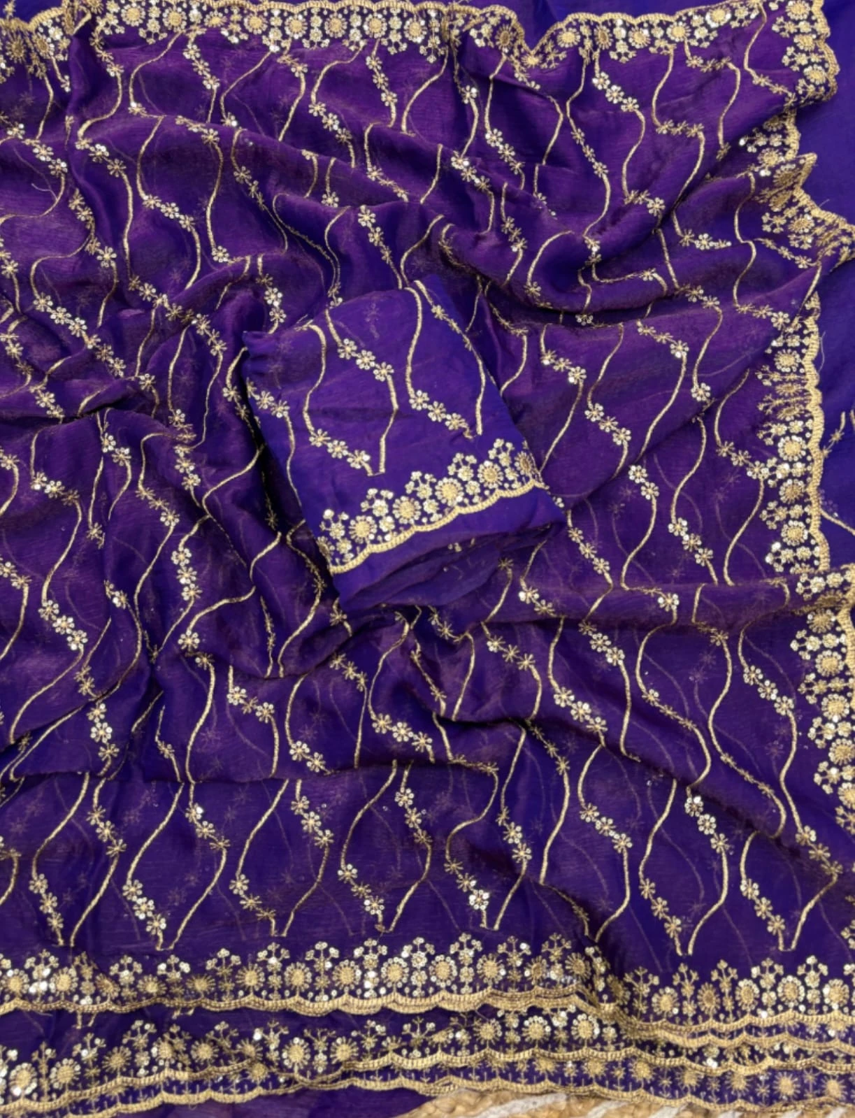 Work Golden Zari with 3 Mm Sequins Work
