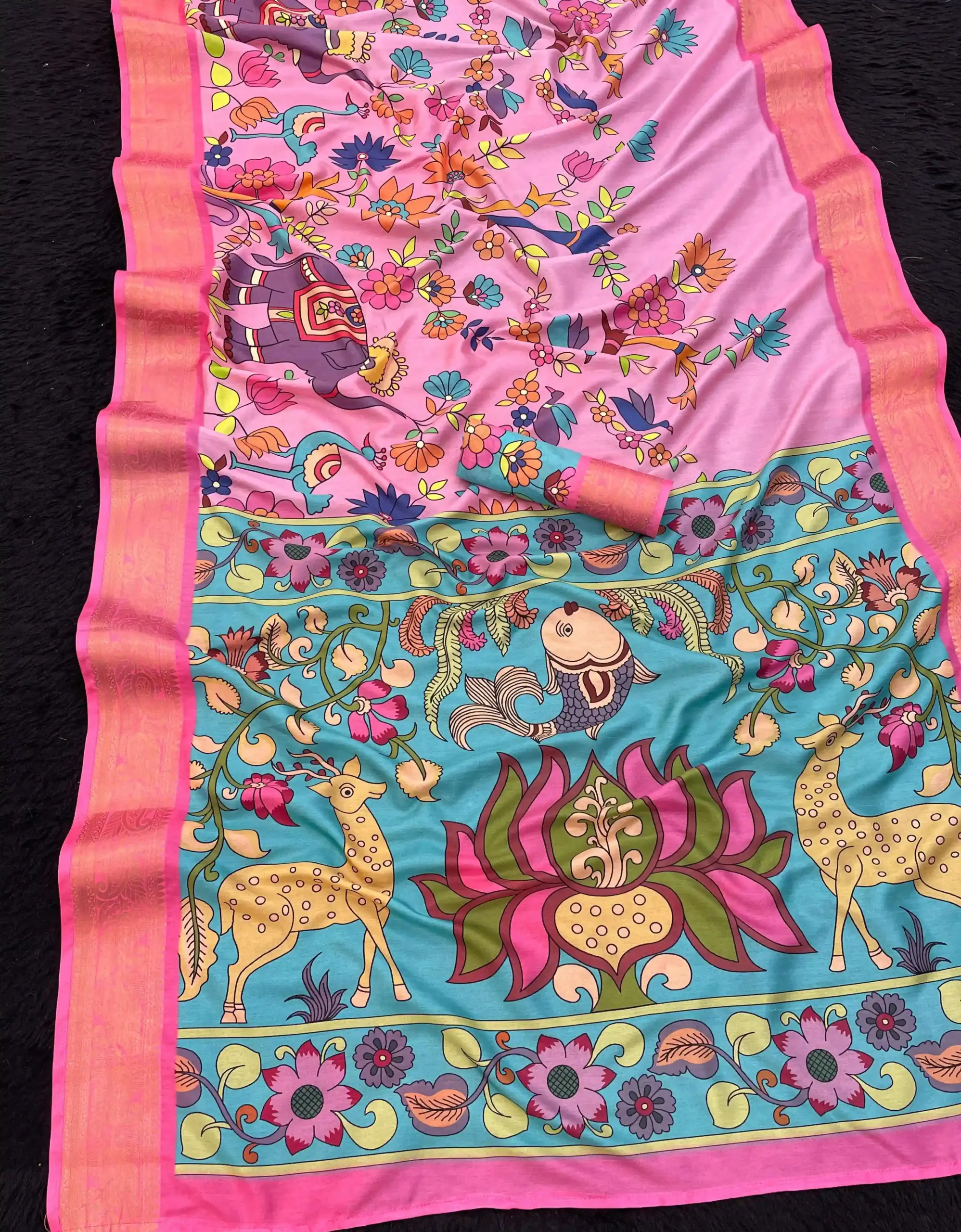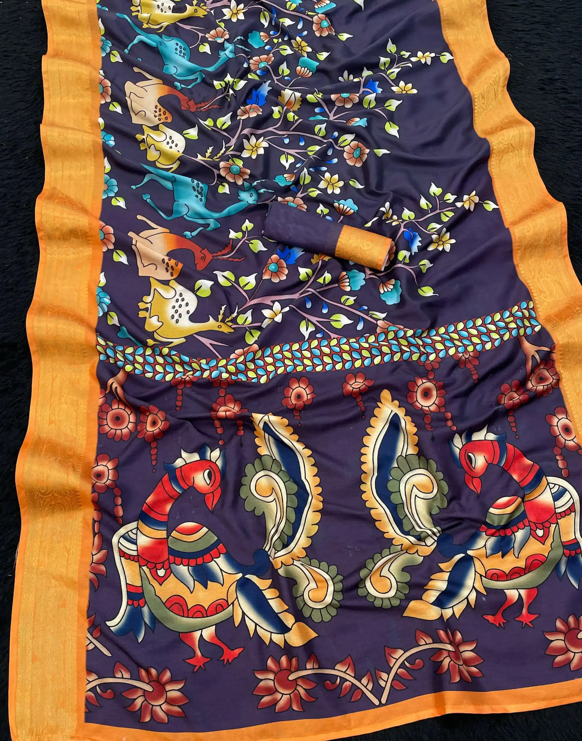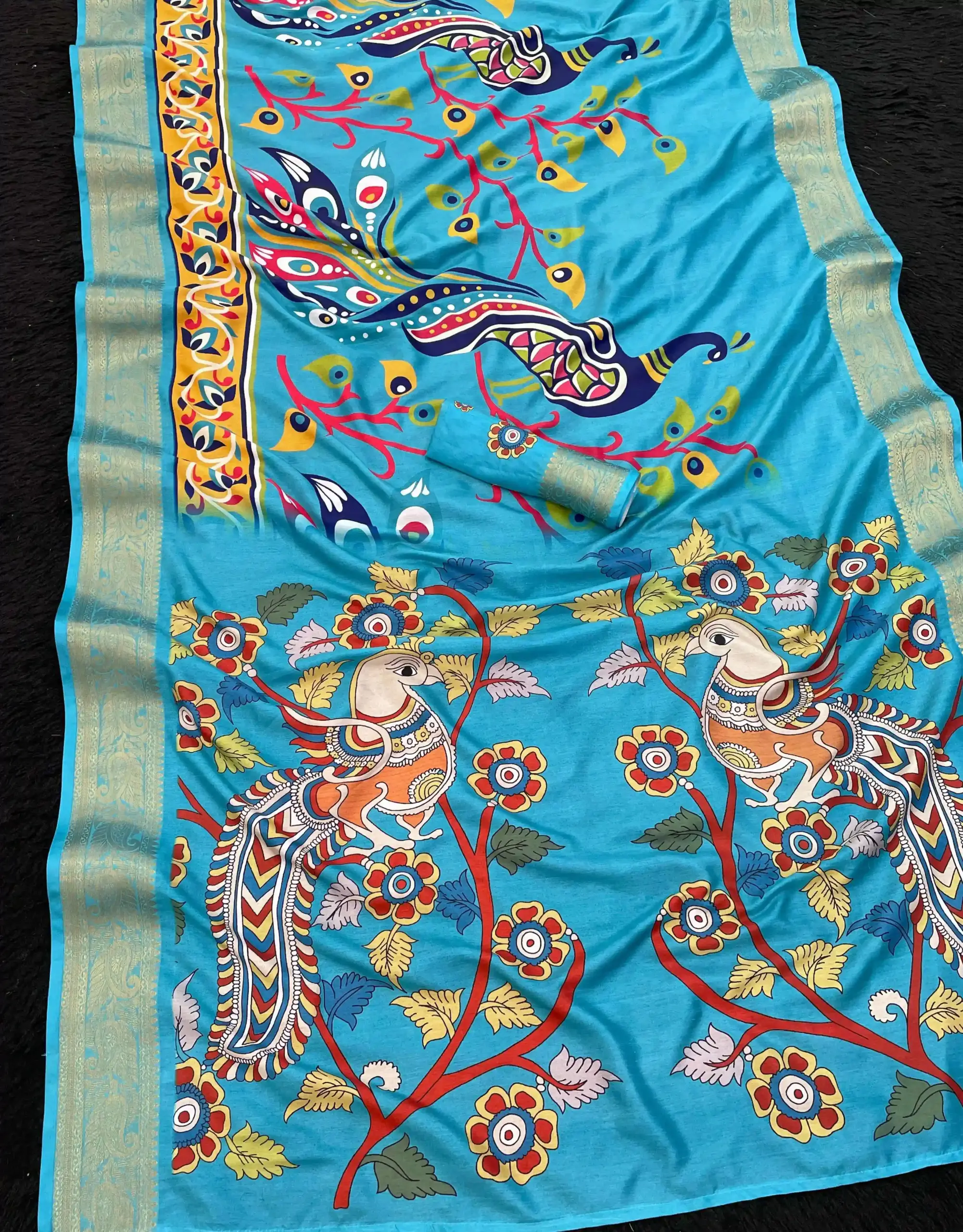| Fabric | Soft Dola Silk Printed with Weaving Border |